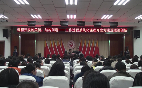 根据《国务院关于加快发展现代职业教育的决定》(国发[2014]19号)和《教育部关于印发《高等职业教育创新发展行动计划(2015-2018年)》的通知》(教职成[2015]9号)文件精神,学院党委为进一步适应新常态,展现新作为,加快课程体系开发,深化职业教育教学改革,积极构建符合交院实际的现代职业教育体系。学院特别邀请教育部职业技术教育中心研究所研究员、中国知名教育专家姜大源教授作题为《课程开发的关键:结构问题——工作过程系统化课程开发方法与理论创新》的专题讲座。讲座由学院党委副书记、院长段明社主持。学院党委班子全体成员、中层干部及全体专兼职教师共计350人聆听了一天的讲座。