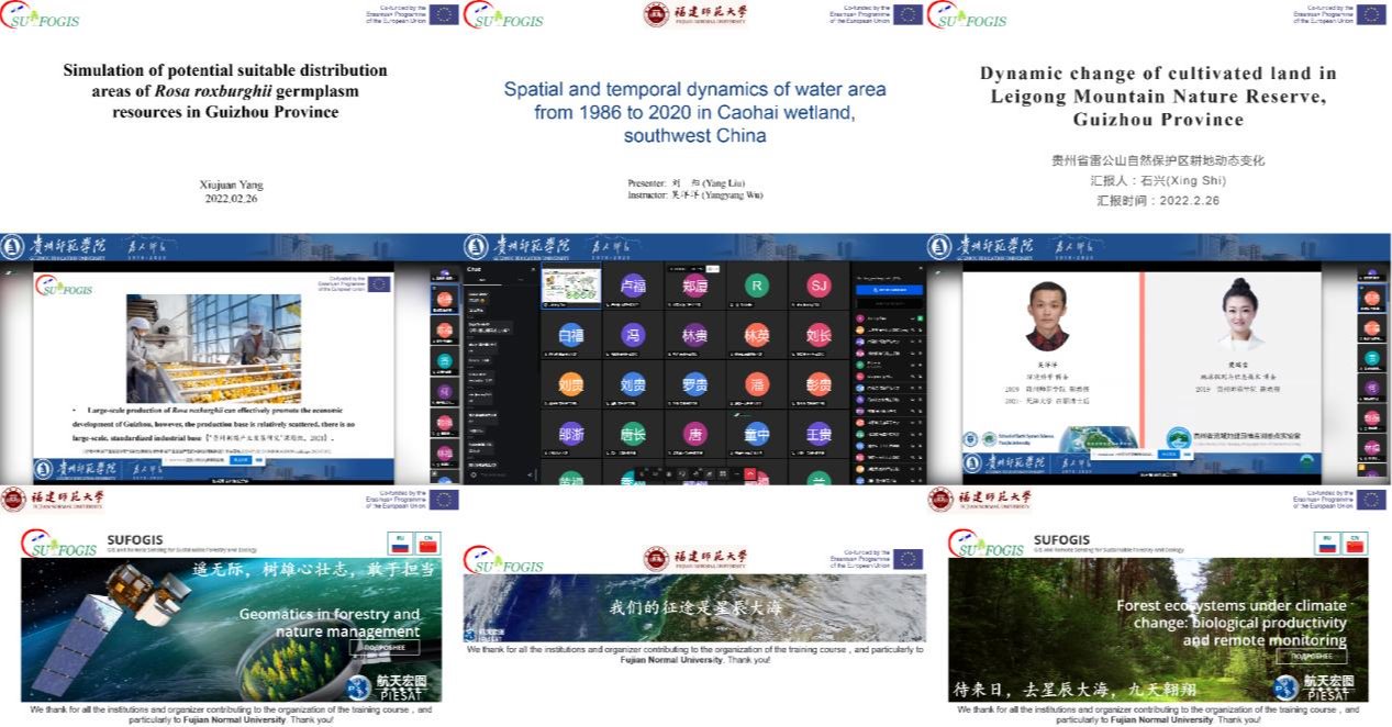 为了提高国际交流合作水平,2022年2月14-日26日(北京时间),贵州山地研究院罗光杰教授、贵州省流域地理国情监测重点实验室吴洋洋、樊瑞雪副教授等带领ballBET贝博BB艾弗森20余名同学参加了由福建师范大学承办的欧盟合作项目GIS And Remote Sensing For Sustainable Forestry And Ecology(SUFOGIS)冬季学校,限于疫情防控需要,本次冬季培训采用线上会议方式开展。参加此次会议的有中国、俄罗斯、欧盟等国内外专家学者与高校学生。本次活动得到欧盟ERAMUS+ SUFOGIS项目(598838-EPP-1-2018-EL-EPPKA2-CBHE-JP)的资助。