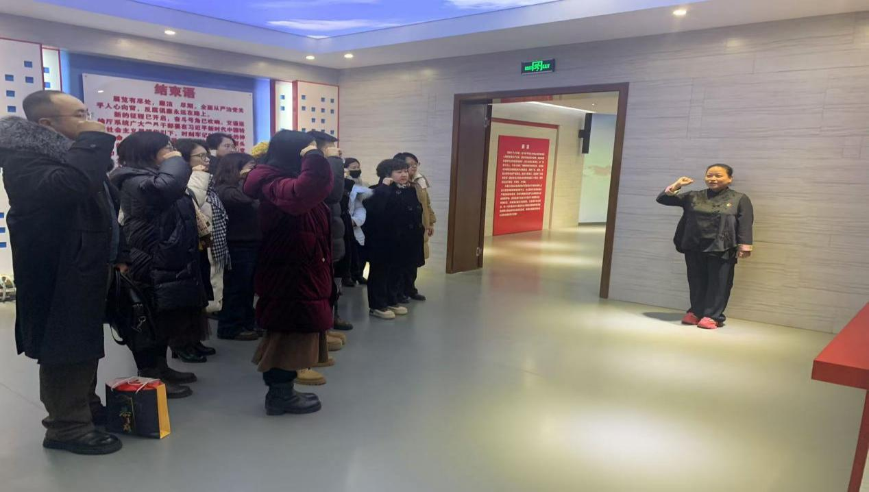 参观结束后,党员教师们在支部纪检委员徐瑾老师的带领下,面向熠熠生辉的党旗,重温入党誓词。入党誓词字字扣心,句句千钧,在铿锵的誓言中,全体党员初心受到洗礼,信念更加坚定。大家纷纷表示,要时刻保持头脑清醒,经常认真进行自我检视。在今后的工作中,不断深化党纪学习教育内涵,把党纪学习教育、党风廉政教育成效转化为“以学促干”实效,强化自我约束,做到学习从严、守规从严,切实增强政治定力、纪律定力、道德定力、抵腐定力,以更加昂扬的士气和进取心态,提升学院教育教学实效,持续推进学院各项事业高质量发展。