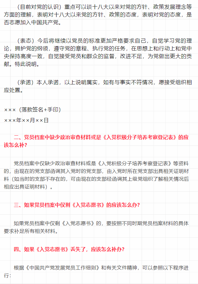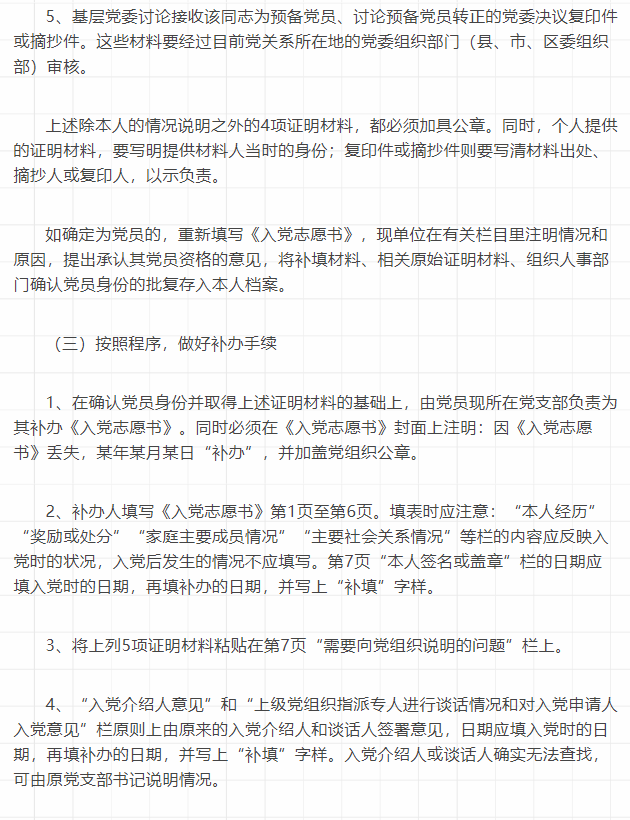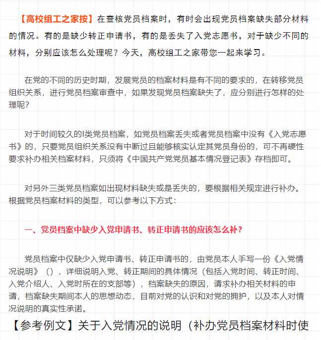 党员档案缺失不同材料的正确处理方法