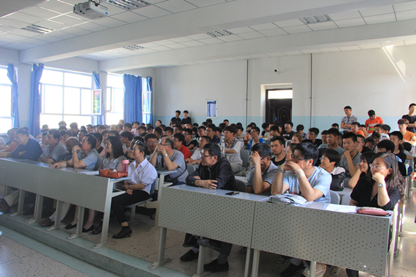 谭彬总经理从社会发展和行业发展的宏观两方面进行了深入剖析,对三一重机新疆京泓工程机械有限公司企业文化、校企合作过程与大家进行了分享,他说:“要学会有计划的生活或工作,没有目标的人,终将在深渊中耗尽一生”,勉励学生要明确学习目的,端正学习态度,树立远大理想,热爱社会,热爱学校,热爱专业,对即将进入公司参加顶岗实习的学生表示热烈欢迎,并期望能在公司成长成才,扎根发芽。