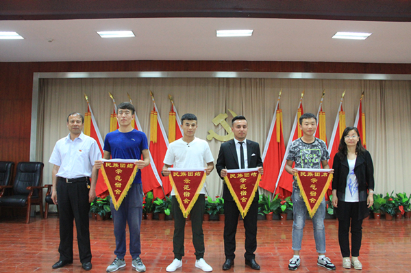 会上,举行了安全稳定亮剑宣誓活动,同学们用实际行动表达了对维护社会稳定和长治久安总目标的信心和决心;对“民族团结一家亲”“三进两联一交友”及民汉合宿活动开展以来,各方面均表现突出的4间先进宿舍进行了表彰并授予“民族团结示范宿舍”锦旗;同时开展了“民汉结对交友”“结对交友信息卡”互认互换仪式;活动环节中,结对学生门共同表演了精彩的文艺活动。
