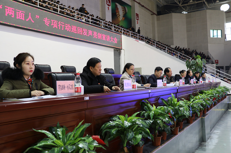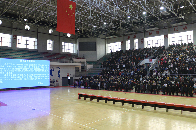 宣讲会上,与会教职工齐唱国歌,集体发声亮剑,共同签名承诺,师生们饱含激情的歌声、高亢的宣誓声在会场上回荡着。