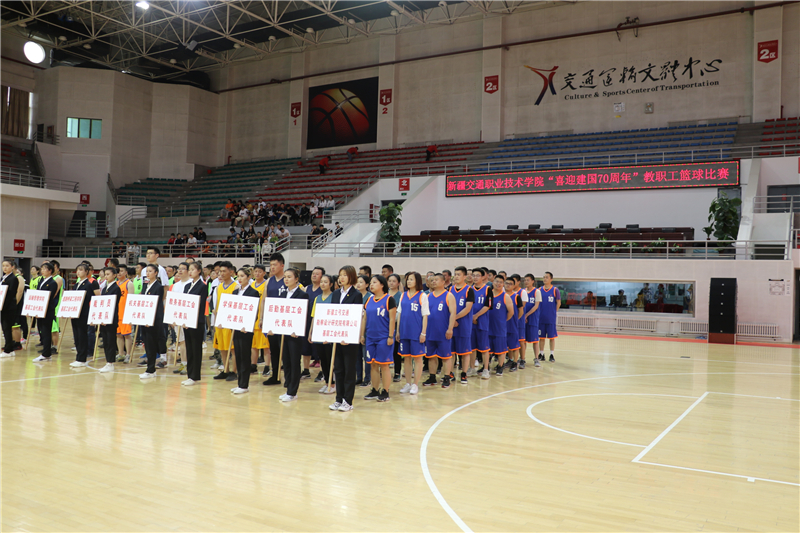 为庆祝中华人民共和国70周年华诞,丰富学院教职工业余文化生活,提高教职工身体素质,更好地为学生教育教学服务。由学院工会主办、学院体育教研组承办的新疆交通职业技术学院2019年教职工篮球比赛于5月27日在交通文体中心篮球馆拉开帷幕。学院党委委员、副院长李绪梅主持开幕式。