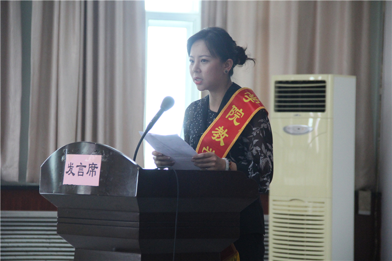 学院优秀教师代表王斐玉发言,她从一名教师的成长经历谈出对党、对祖国、对学院的感恩之情。学院优秀辅导员代表王庆讲述了自己在学生管理工作中点滴感悟。优秀班主任代表吾买尔江·阿不都热西提从班主任视角讲述了如何做“四有”好老师。教学能手代表徐瑾结合思政课教师责任和提升思政课教学实效性分享了个人经验。