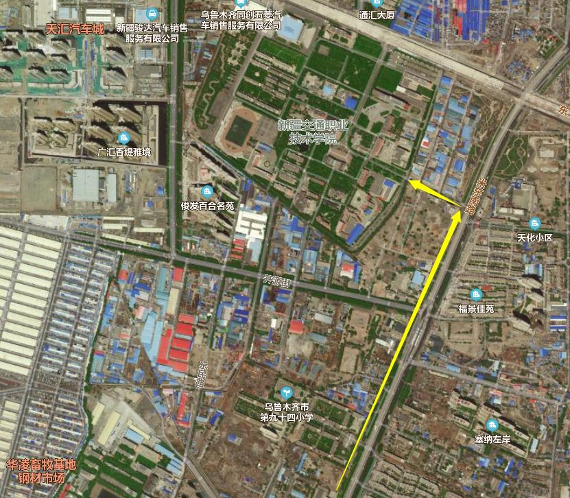 自驾车、搭乘私家车或出租车前往学院报到的家长和同学须沿吐乌大高速路向北行驶,进入米东南路,抵达新疆交通职业技术学院东门。