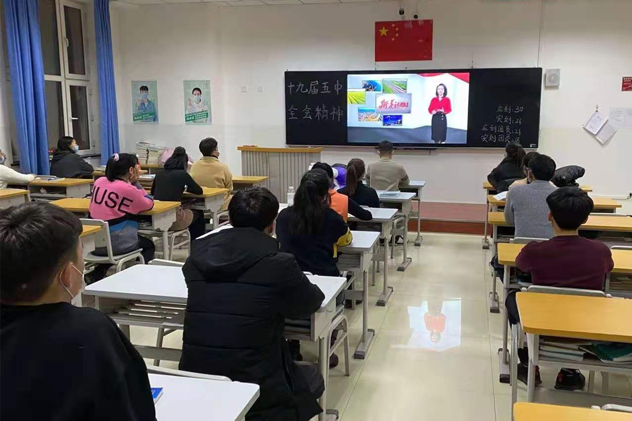 各团支部通过主题团日以及专题学习等方式组织广大团员学生集中学习党的十九届五中全会精神,并结合自身学习、生活和工作实际,谈感想,凝共识,聚力量。大家在学习中纷纷表示,党的十九届五中全会的召开,让自己对中国未来的发展有了更清晰深刻的认识,对实现伟大复兴的中国梦更加充满信心。