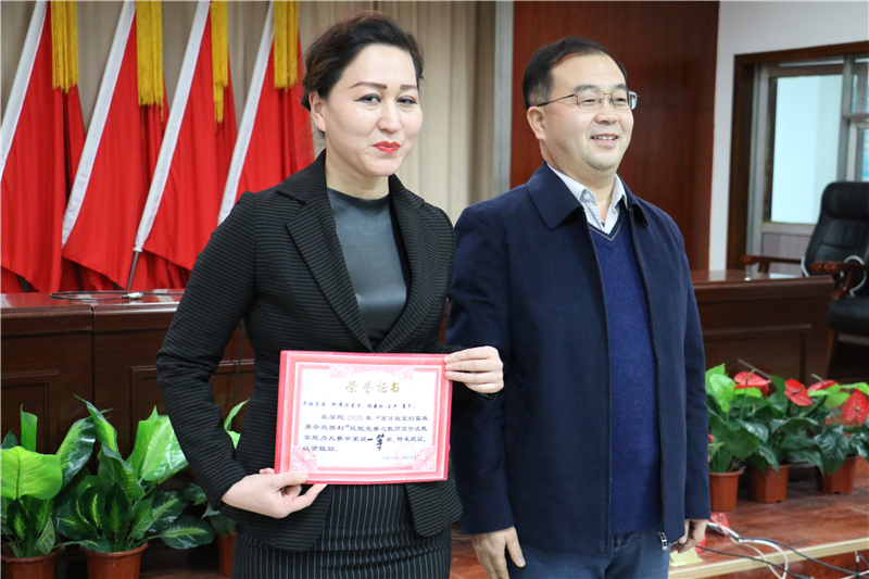 2020年12月29日学院在图书馆四楼多功能厅举办以“百日攻坚创实效、勇夺双胜利为主题的教师混合式教学能力大赛。