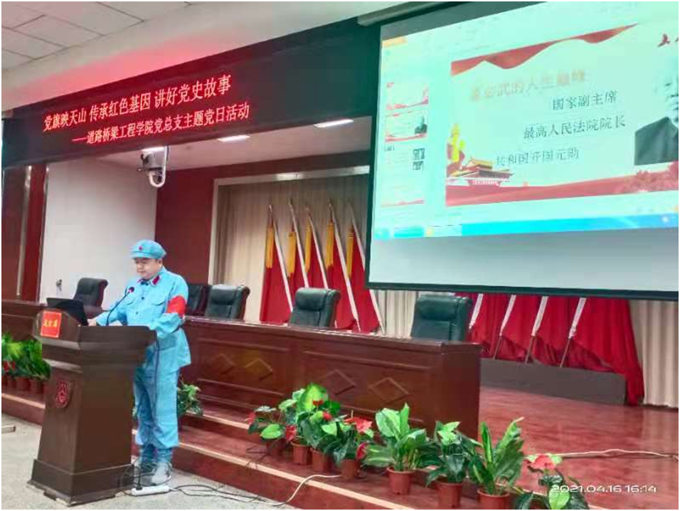 学院党委书记王瀚出席活动并讲话,他说:今年是我们党百年华诞,在这一重大时刻,在“两个一百年”奋斗目标历史交汇的关键节点,在全党集中开展党史学习教育,正当其时,十分必要。并激励全体党员干部在讲党史故事中理清党的历史脉络、把握党的历史规律,进一步增强教职工“四个意识”、坚定“四个自信”、做到“两个维护”,提高政治判断力、政治领悟力、政治执行力,充分发挥好学校在宣传党的思想理论、锤炼党员党性方面的重要作用,为新疆交通教育事业做出应有的贡献。