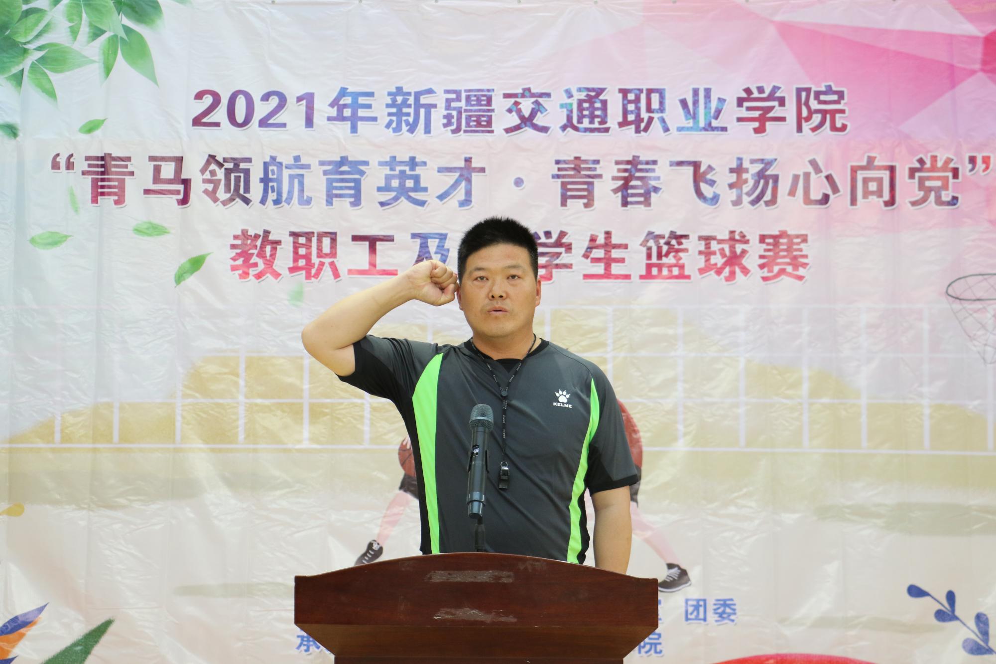 为庆祝建党100周年,传承体育文化,弘扬体育精神,由学院工会及团委主办,人文基础教育学院体育教研室承办的“青马领航育英才·青春飞扬心向党”学院2021年教职工及大学生篮球赛在我院文体中心顺利开幕。开幕式由学院党委委员、副院长帕尔哈提·艾则孜主持。