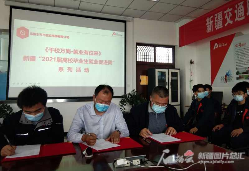 5月21日16时,新疆交通职业技术学院2018级学生吕新雨与校企合作企业、学校共同签了三方协议书。自2021届高校毕业生就业促进周启动以来,各高校尤其是职业类院校,加大了校企供需对接力度,校园专场招聘会持续不断,各企业纷纷前来揽才。