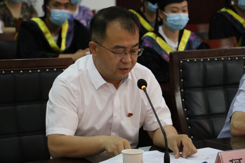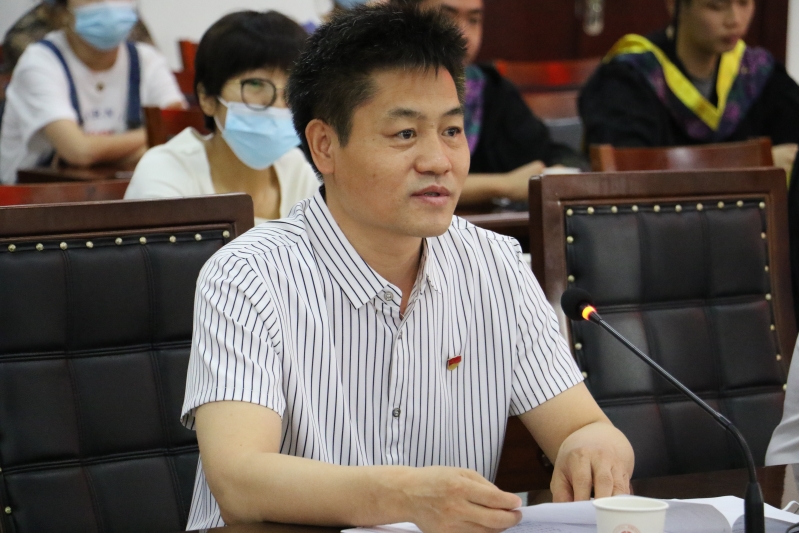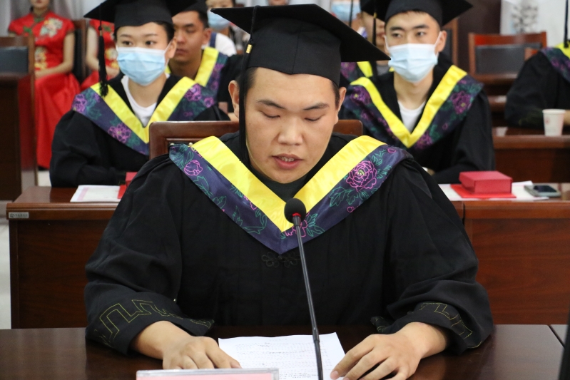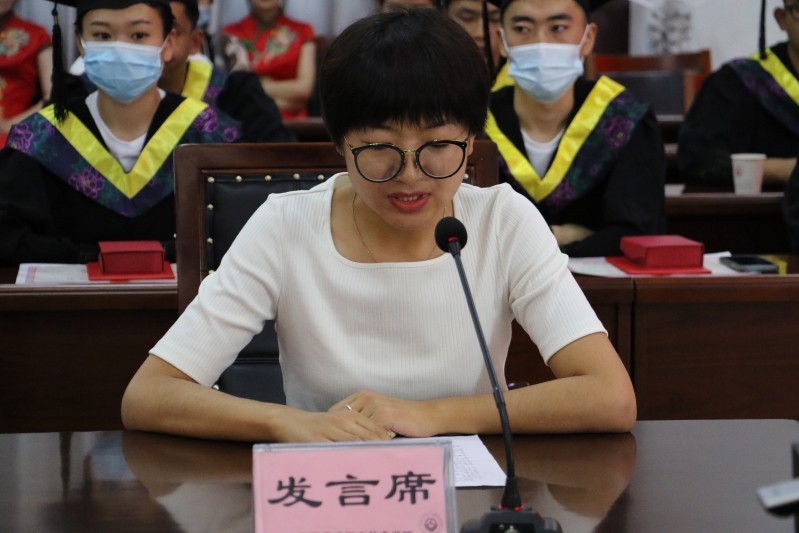 学院党委书记、副院长王瀚同志为荣获2021届优秀毕业生、国家奖学金、国家励志奖学金的学生代表颁发荣誉证书,为毕业生代表颁发毕业证书,并视频连线校外毕业生代表。王书记通过视频对话,了解场外毕业生代表工作生活现状,句句叮咛,字字嘱咐,他话语重心长地讲到:“同学们,无论你们在何时何地,面临何种艰难险阻,都要有一往无前的恒心和越是艰难越向前的决心,以英勇奋斗的精神从挫折中不断奋起、永不气馁,勇做走在时代前列的奋进者、开拓者、奉献者,用青春和汗水创造新时代的伟大奇迹”。王瀚书记再次向顺利毕业、即将步入社会、投入新时代国家建设的2021届全体毕业生表达了最热烈的祝贺,为即将开启人生新旅程的同学们送上了最美好的祝福!
