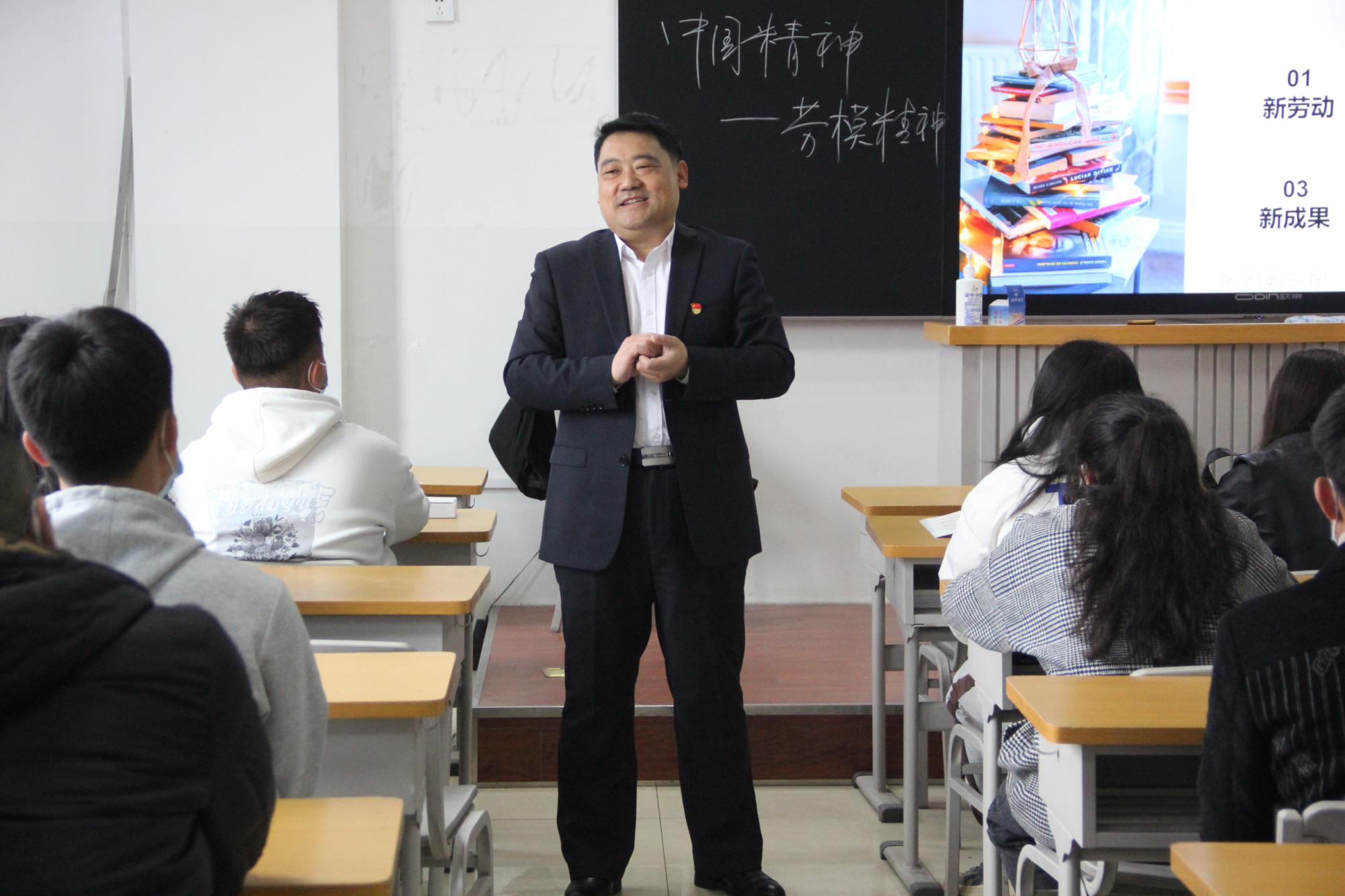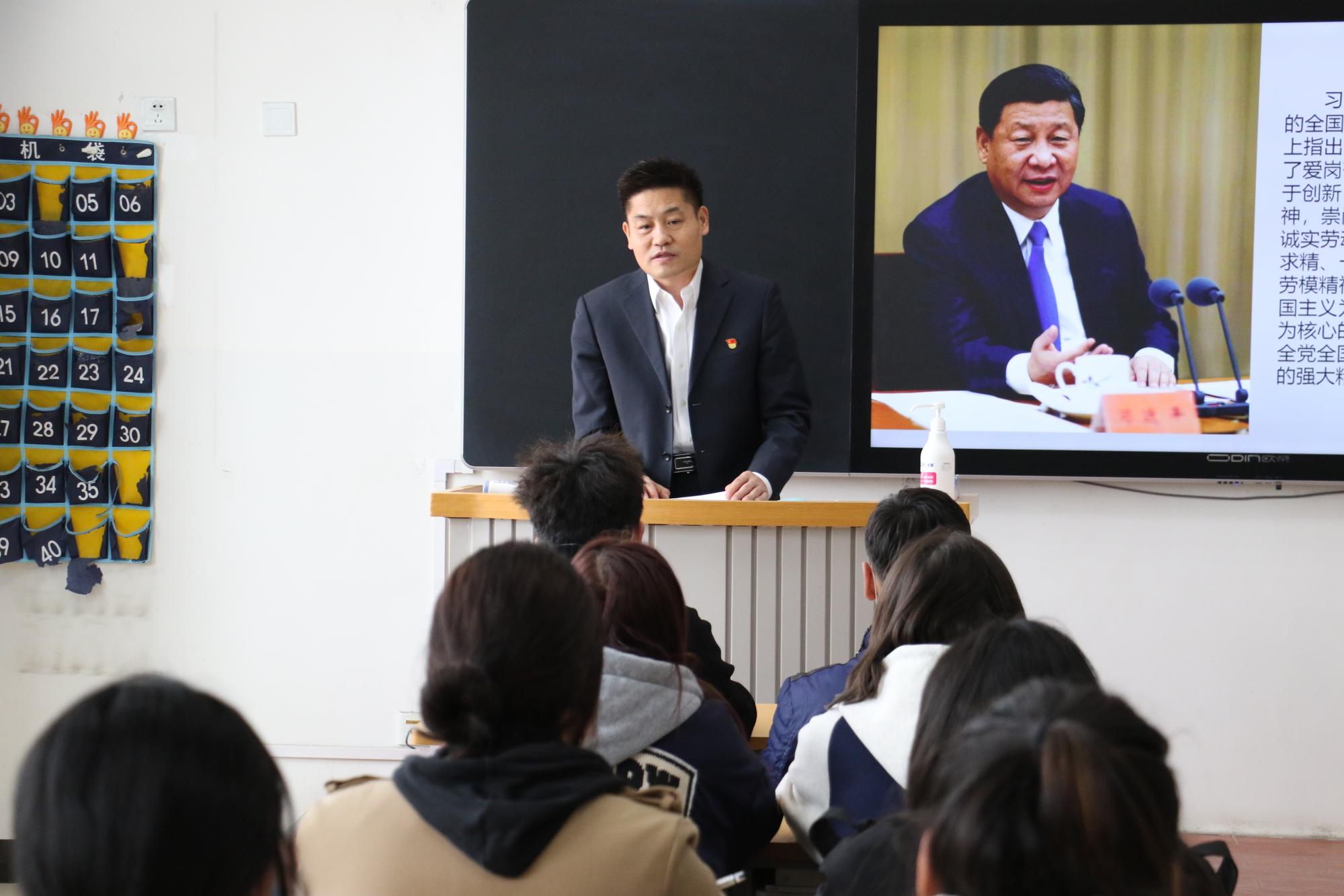 学院党委书记、副院长王瀚以习近平总书记重要讲话为主线,讲述了钱学森、钟南山、袁隆平等科学家的感人故事,更用学院典型人物马晓明的事迹生动诠释了劳模精神、劳动精神、工匠精神的深刻内涵。王书记与同学们亲切互动,教育引导学生传承和弘扬劳模精神、劳动精神、工匠精神,寄语同学们将学习知识与学习技能结合起来,不怕吃苦、勇挑重任;不畏困难、勇毅前行,将实现小我融入实现中华民族伟大复兴中国梦的大我之中,为自己、社会、国家贡献青春力量。