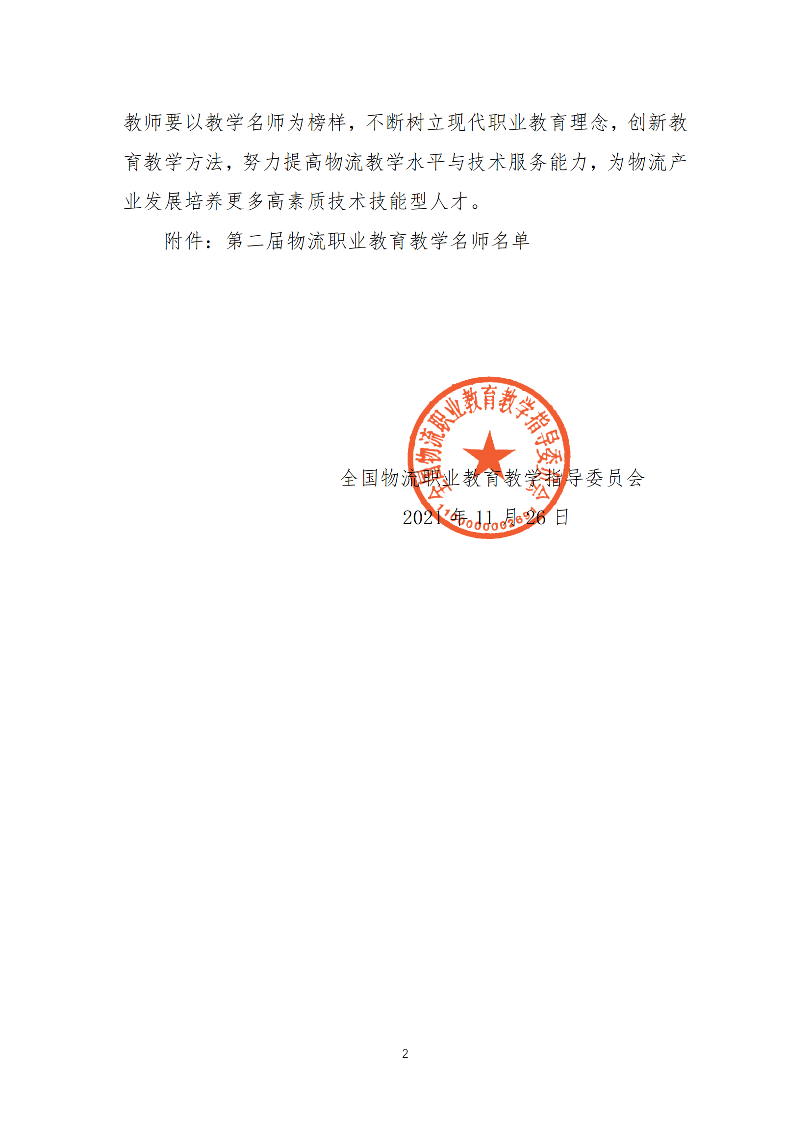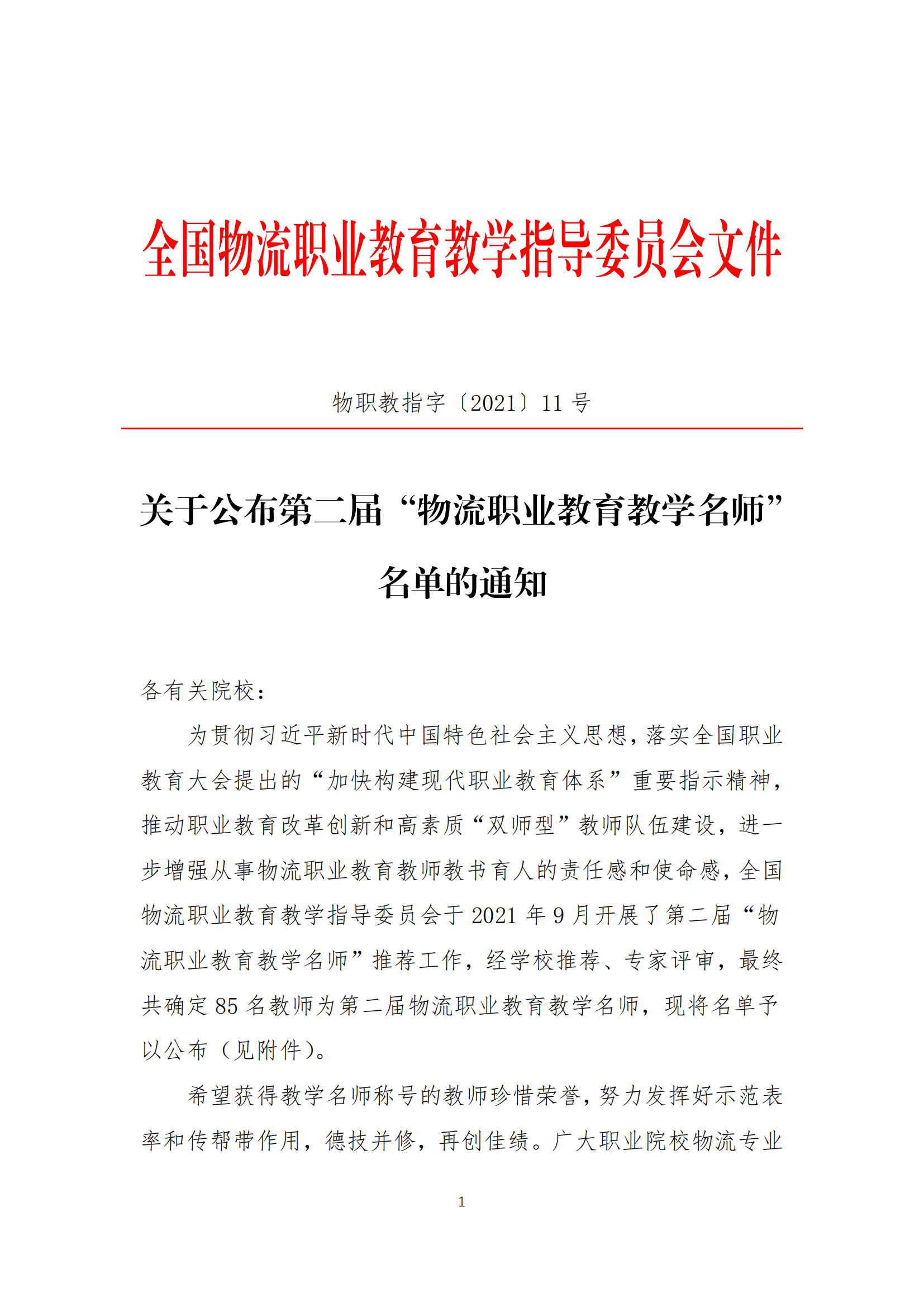 关于公布第二届物流职业教育教学名师的通知.pdf