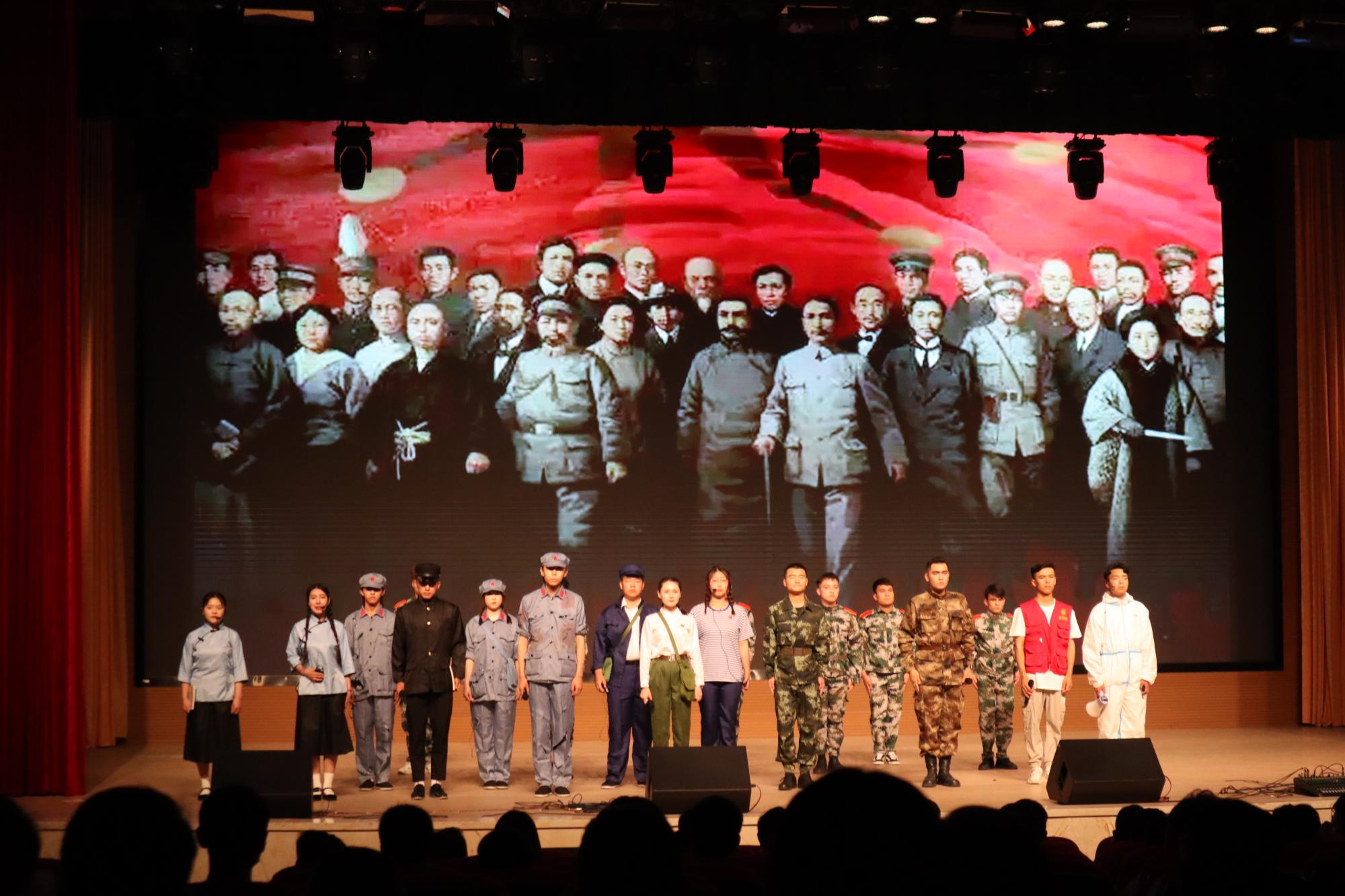 活动在慷慨激昂的国歌声中拉开帷幕,选手们以饱满的精神状态,声情并茂、富有感染力的表演给现场观众带来了一场精彩而温情的活动盛宴。舞蹈《中国字·中国人》青春洋溢,各民族同学共同演绎出中华民族博大精深的文化魅力,信号G201班努尔麦麦提·艾麦尔劲健的毛笔字更是赢得现场观众的阵阵掌声;《共青团之歌》合唱激情澎湃,展现了当代青年用信念吹响青春号角的决心;机电D203 亚库甫江·那加甫表演的《再见老兵》那句“召必回”句句铿锵、动作熟练,展现了我院学子参军5年返校学习退伍不褪色,用青春实现中华民族伟大复兴中国梦的坚强决心;《五四风云》《请回答,青年》等节目通过演绎经典话剧的方式缅怀先烈、青春担当,重温了热血青年的为新中国的奋斗征程。