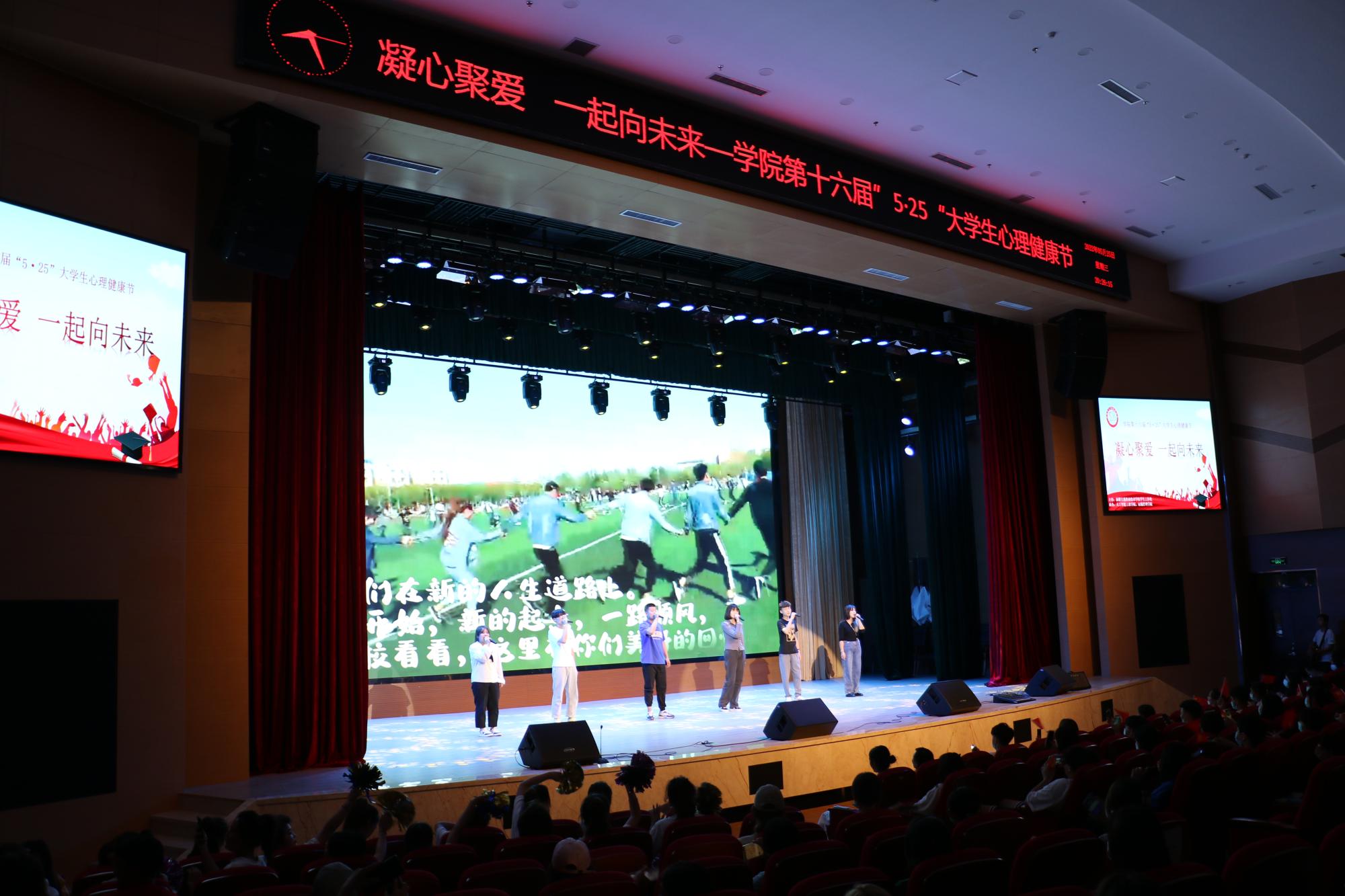 “我和我的祖国,一刻也不能分割……”,随着大礼堂内响起悠扬的旋律,活动正式开始,歌声、舞蹈、乐器声、欢呼声溢满整个大礼堂,同学们高举起手中的五星红旗,精心准备的玩偶和同学们调皮互动着,台上台下欢腾一片,快闪表演感染着在场的每一个人;心理健康教育与咨询中心刘幼群老师通过轻松愉悦的互动、体验式活动,使学生充分理解领悟了“5·25”大学生心理健康节深刻含义,在活动中体验,在体验中升华。