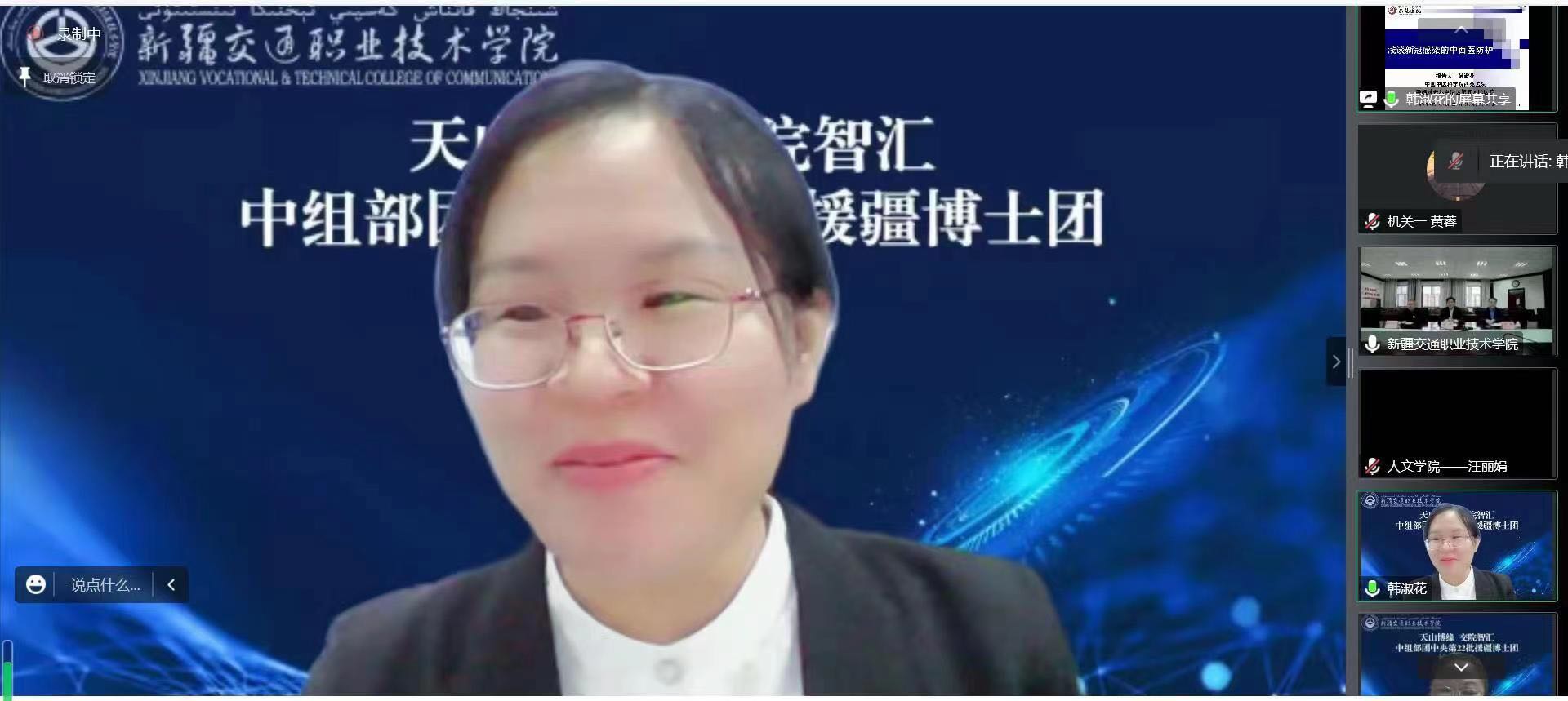 韩淑花博士作了题为《浅谈新冠感染的中西医防护》的首场讲座。韩医生重点围绕奥密克戎株新冠肺炎疫情特点、远离奥密克戎株病毒的四原则、疫情期间如何做好中医调护等三个方面,从中西医结合的角度,深入浅出地进行了讲解,具有很强的操作性和指导性。专家的细致讲解加深了广大师生对新冠疫情新的更深层次的认识,进一步提升了疫情防控意识,大家纷纷表示要把学到的疫情防控知识运用到具体生活、工作中去,在师生中广泛宣传,为学院疫情防控常态化提供有力保障。