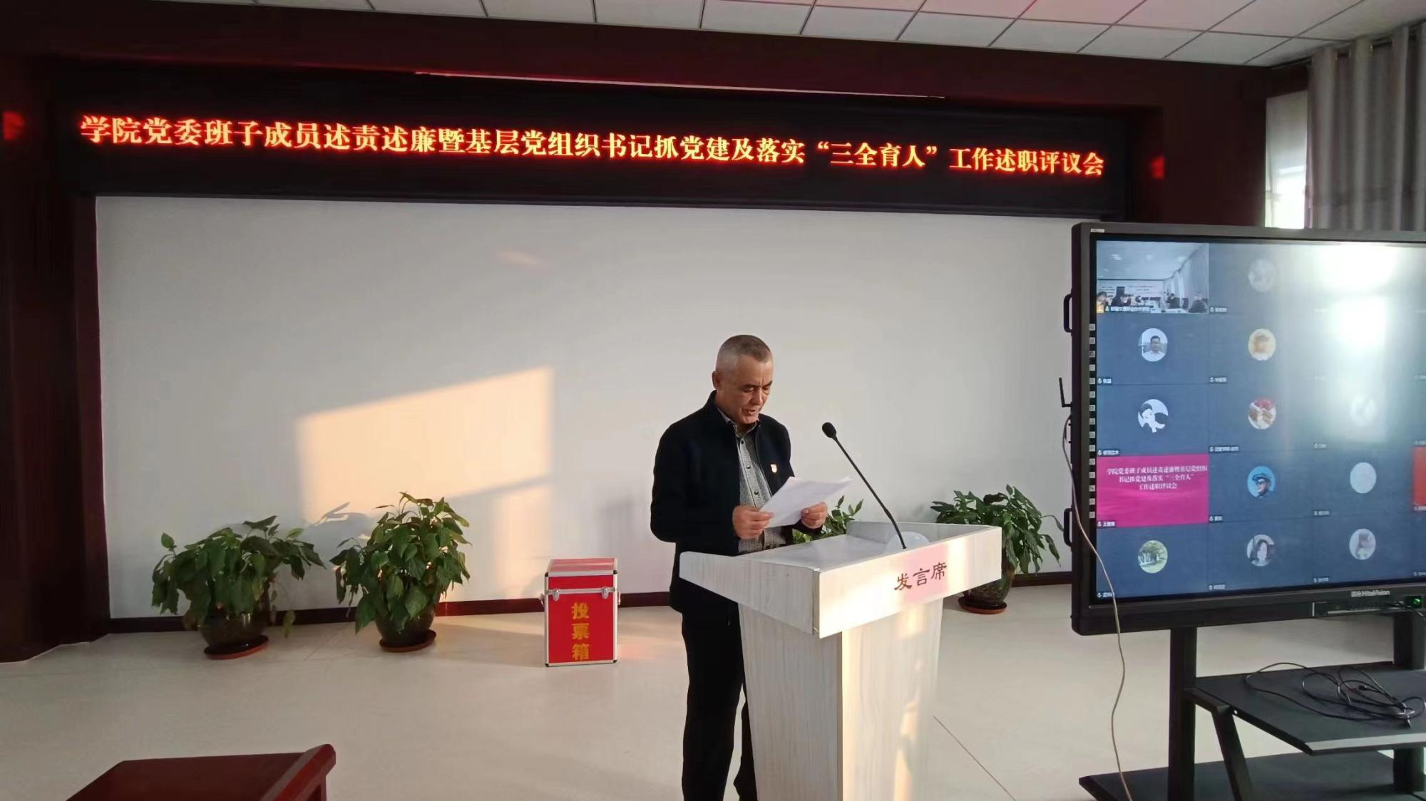 会上还对各基层党组织及书记抓党建及落实“三全育人”工作进行民主测评。此次会议通过线上线下同时举行,院领导、各基层党组织书记、委员及党员代表共102人参加。