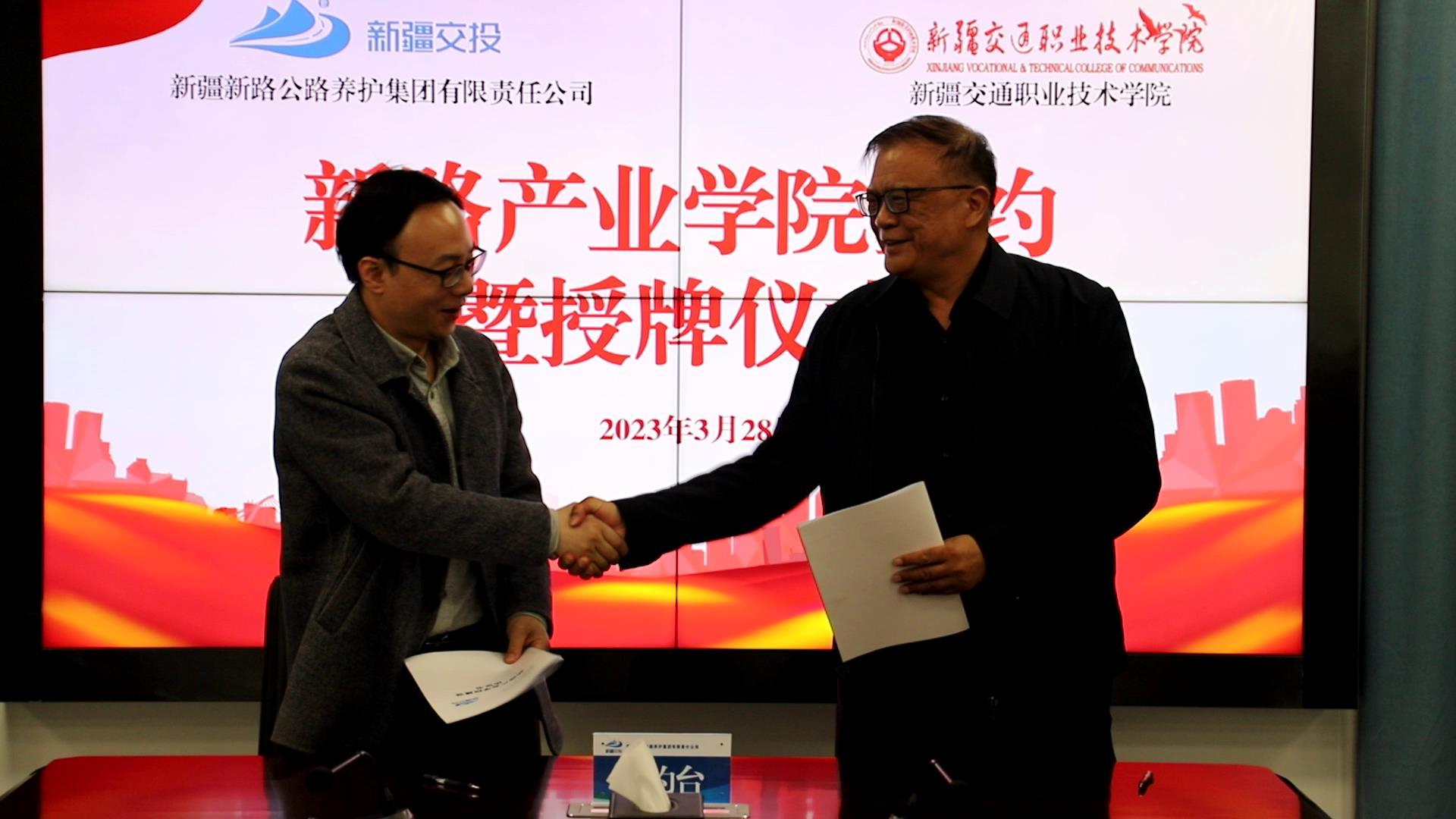 3月28日上午,学院与新疆新路公路养护集团有限责任公司成立了“新路产业”学院,校企联手帮助学院提升“道路养护与管理”专业人才培养的针对性,帮助企业解决在新疆公路养护人力资源严重不足的难题。