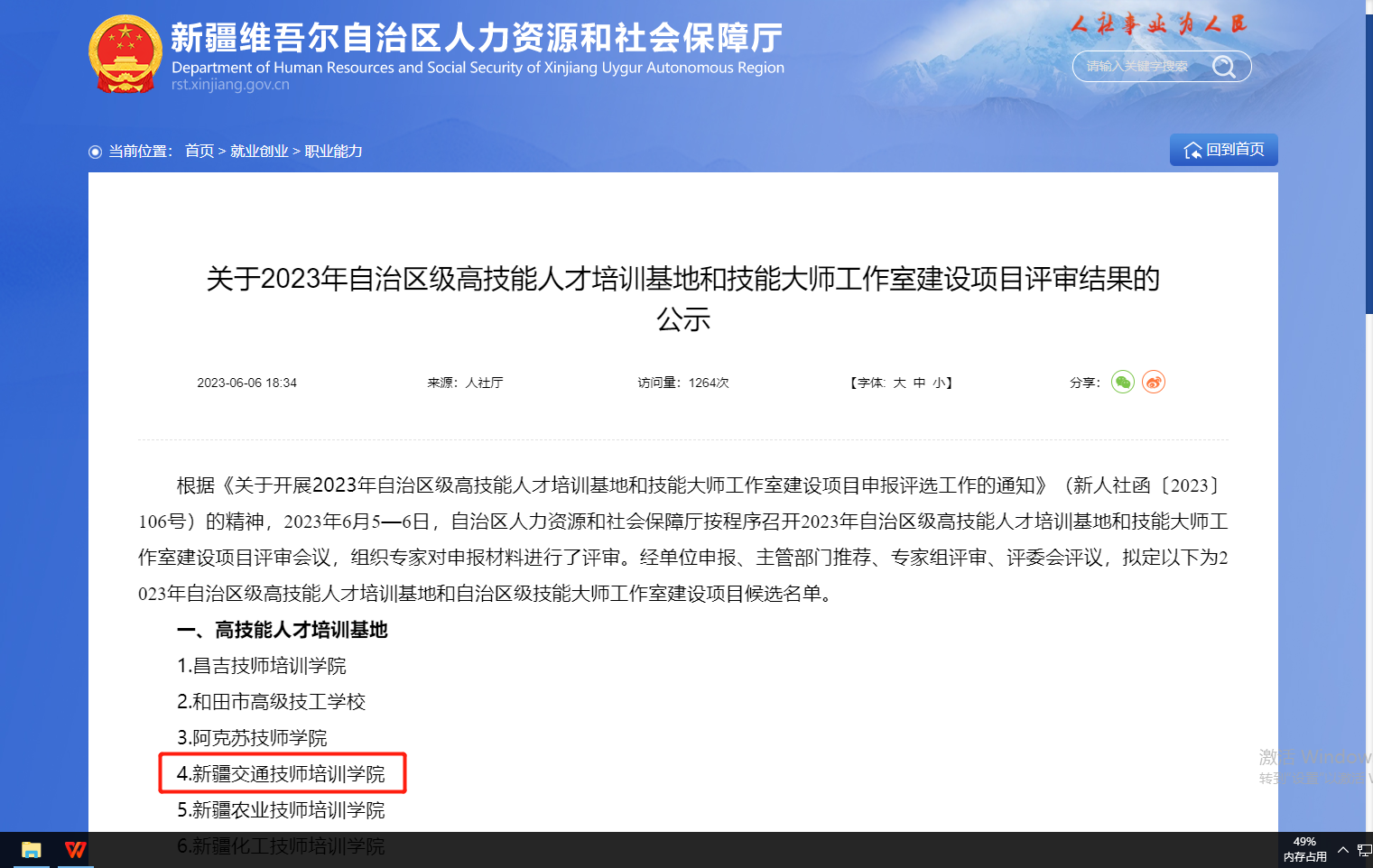 近日,自治区人社厅公布了《关于2023年自治区级高技能人才培训基地和技能大师工作室建设项目评审结果的公示》,学院获批2023年自治区高技能人才基地、汽车工程学院苟春梅新能源汽车检测与维修技能大师工作室入选建设项目。