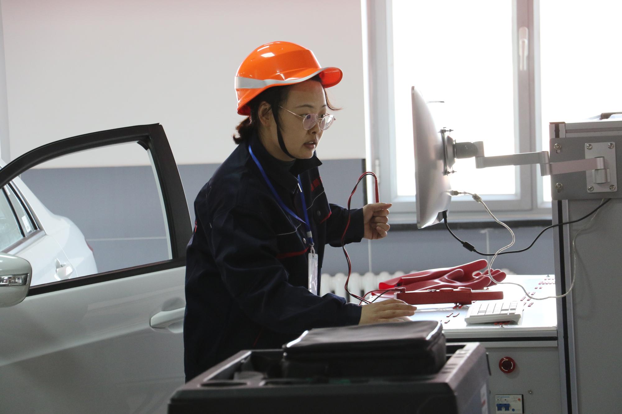“在学校,我担任新能源汽车检测与维修专业课程,我的兴趣很广泛。我会参加各类大赛,也指导学生参加了大赛。同学们实战经验不那么丰富,我会进行专业辅导,让学生互评、对教师评价,有效地评估学生的认知水平。在平时指导时,以目的为导向,直接对标比赛模块、比赛内容和比赛形式进行针对性训练。”