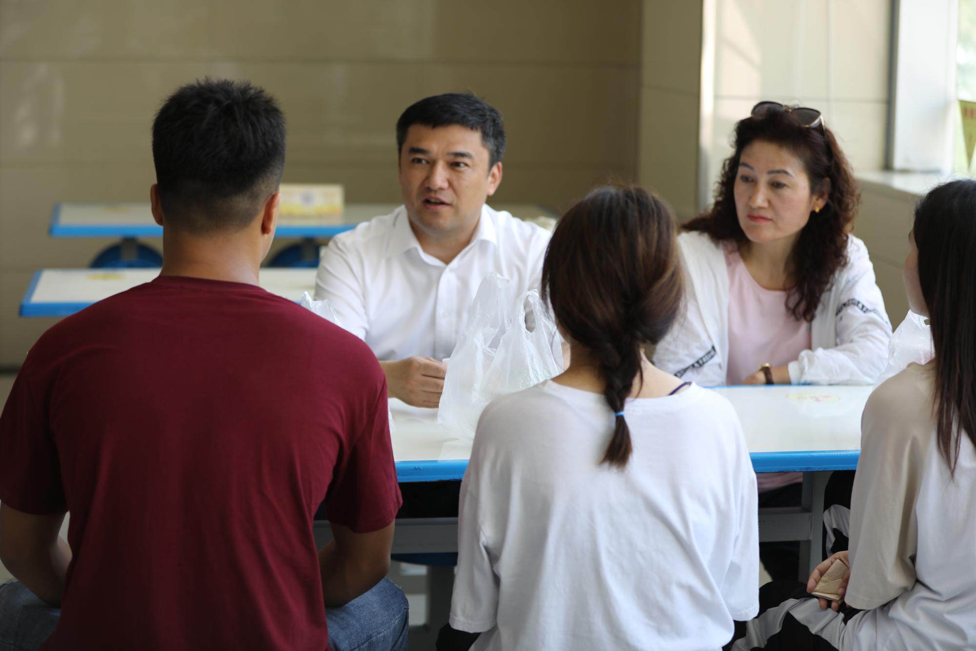 西尔艾力·外力与同学们共进午餐,边吃边聊,温馨愉快。同学们向厅长汇报了学习情况,分享了校园趣事。厅长与这些青年好朋友们探讨了人生规划。