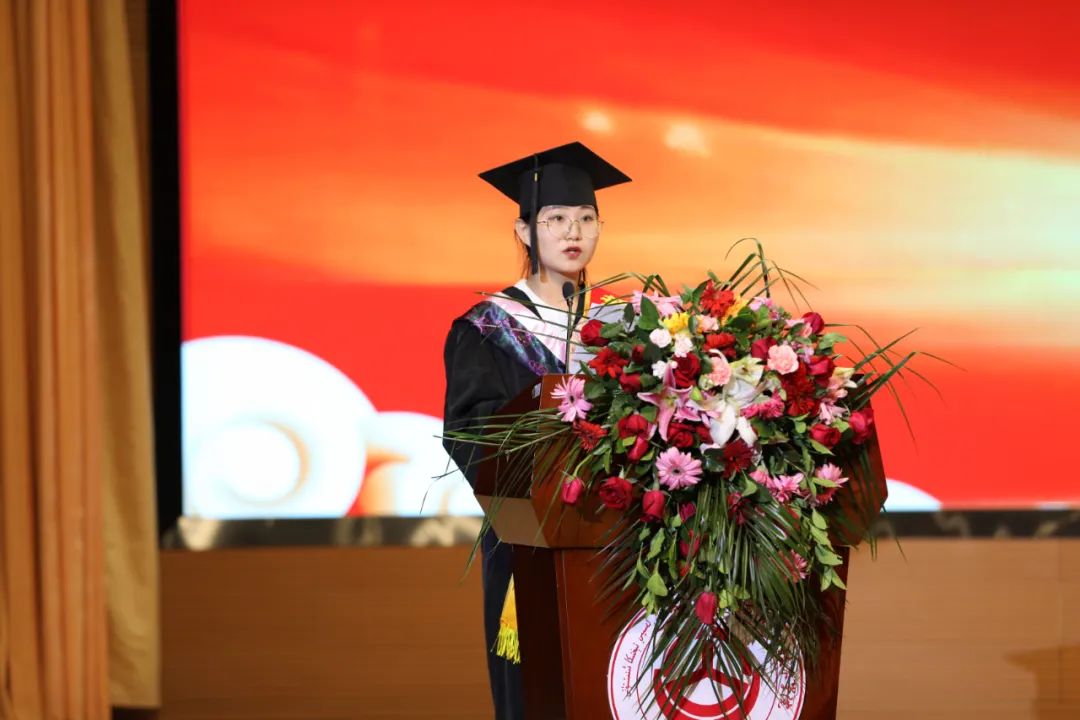 来自运输管理学院城运D201班的安晓婷同学作为2023届毕业生代表发言,字里行间流露出对母校的眷恋、对老师的感恩、对同学的不舍,并对学校的悉心培养和老师的深切关爱表达了真挚的感谢。