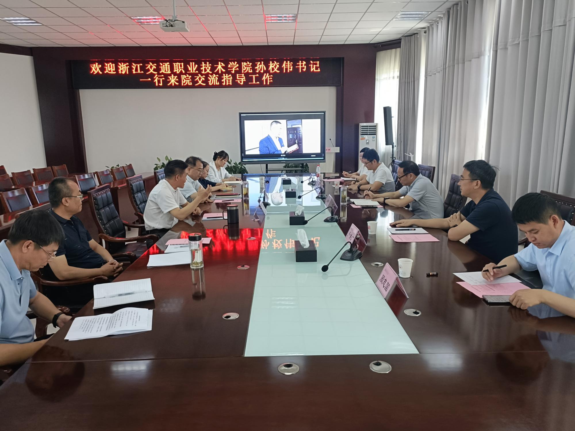 6月25日,浙江交通职业技术学院党委书记孙校伟一行来我院调研交流。我院党委书记王瀚主持座谈会。我院党委副书记、院长何朴参加座谈。