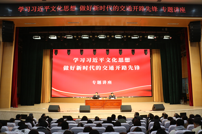 吴健从习近平文化思想的内容及意义、新疆交通文化体系的内涵解读、新疆交通文化的引领作用、做好交通文化建设的体会等四个方面向师生们娓娓道来,讲述了宣传思想文化工作的极其重要性,建设交通文化、弘扬交通精神的重要意义及做好交通文化的举措路径,让各族师生受益匪浅。