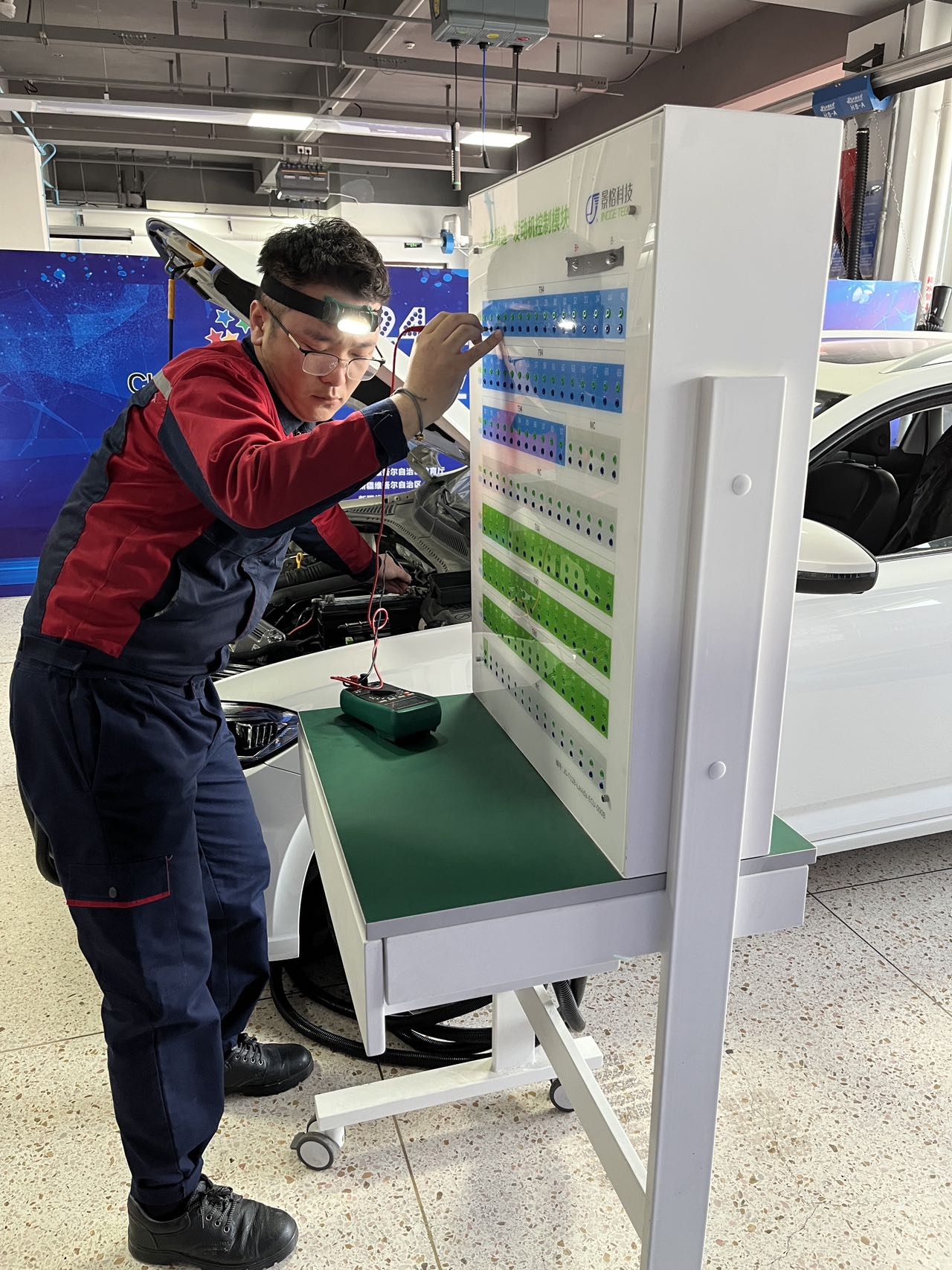 考核前,学院为所有选手安排了相应的培训,苟春梅新能源汽车检测与维修技术大师工作室教师、寇星源创新工作室教师分别指导各选手对竞赛技术标准、竞赛车型设备、竞赛场地等进行了解读和训练。