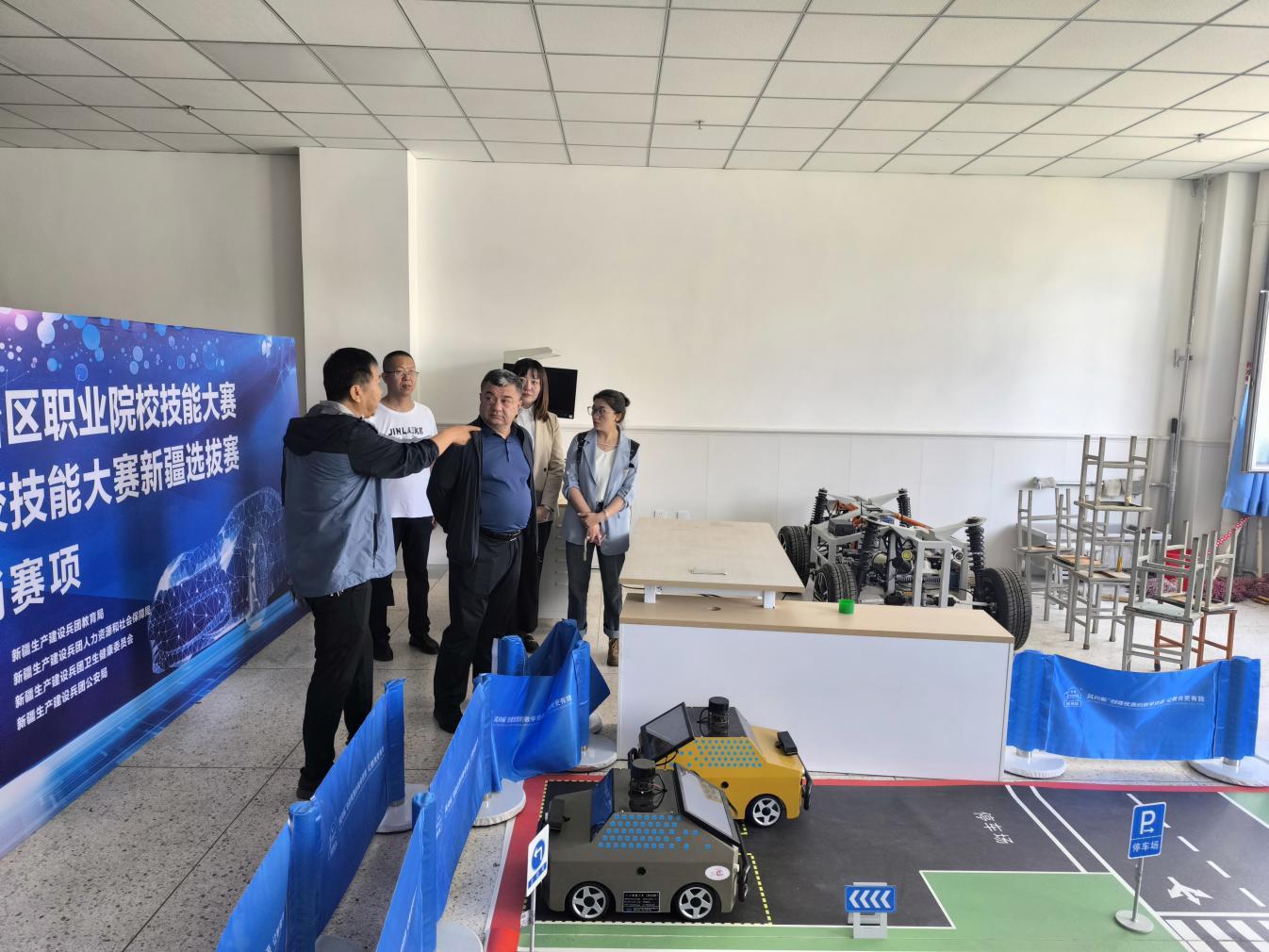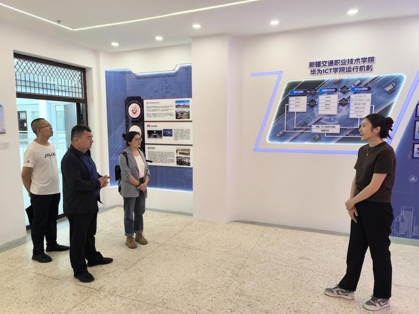 乃比江·亚生一行参观了学院上汽大众新疆交通职业技术学院培训中心、多功能测绘实训中心、华为ICT产业学院,物流实训基地等实训场所,深入了解了实训室建设、实训课程开展、实训师资配备等情况。