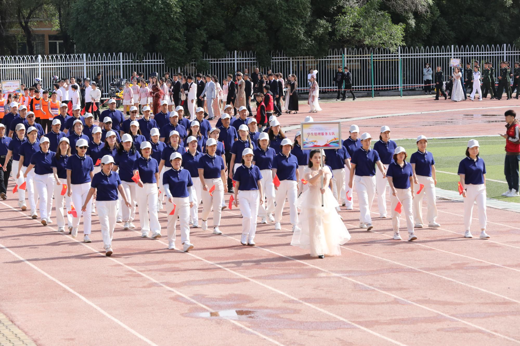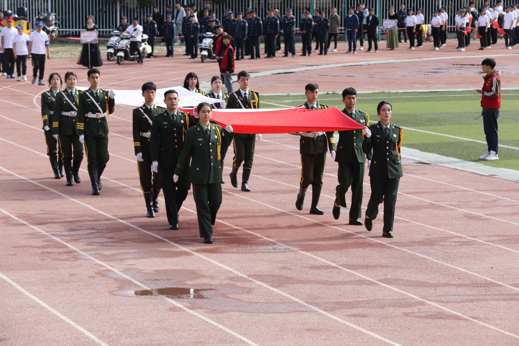 伴随激扬的旋律,国旗、院旗方队踏着整齐的步伐昂首阔步走向主席台,裁判员方队、维护校园安全稳定方队、重点攻坚项目方队、教书育人方队、学生管理服务方队、铸牢中华民族共同体意识方队依次入场亮相,他们精神饱满、气宇轩昂,充分展现了交院师生昂扬向上的精神风貌;各二级学院运动员及师生融情方队高喊着各具特色的口号,展现了各学院的办学特色和专业风采。