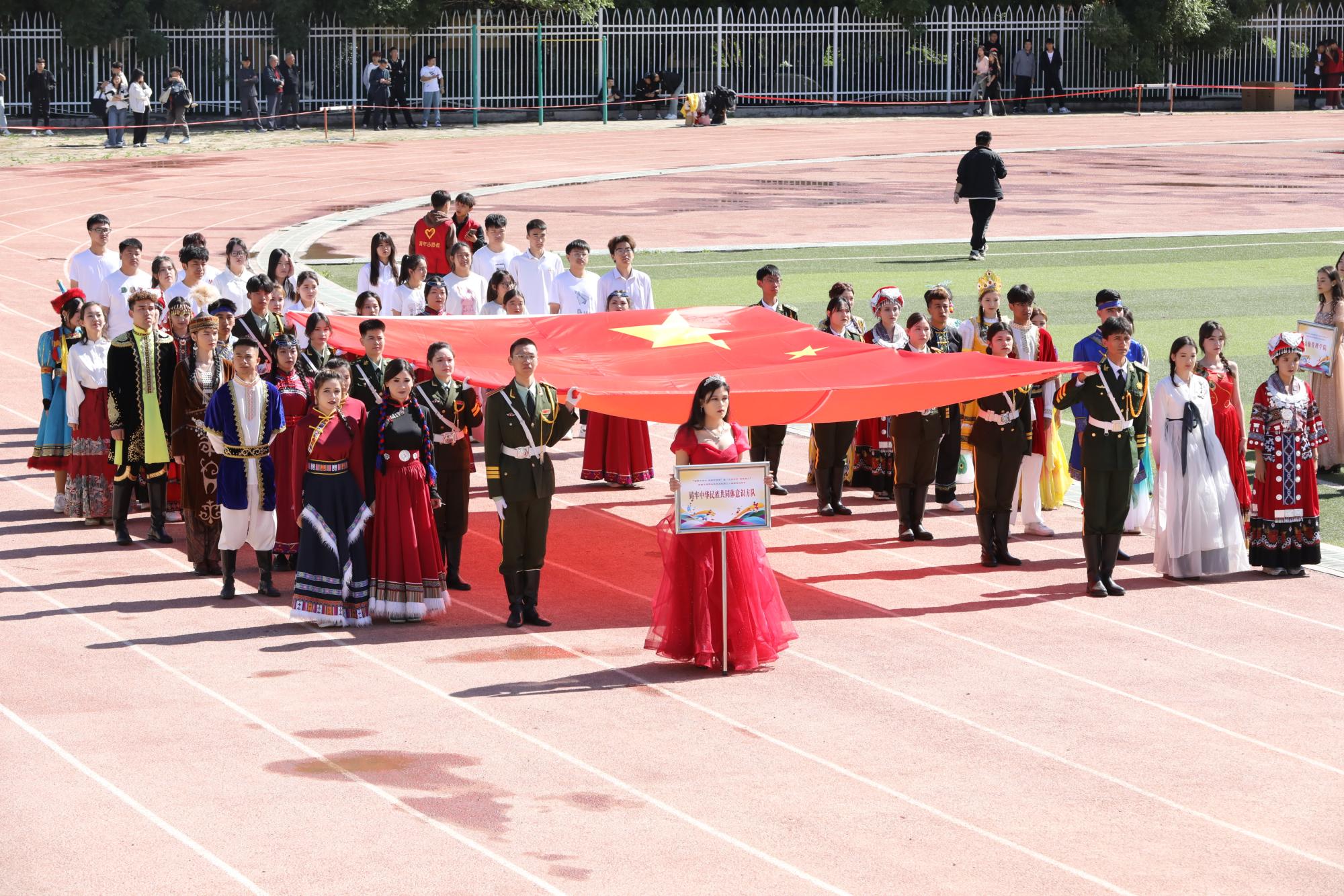 当饱含深情的《我爱你,中国》回响在田径运动场的上空,身穿各民族服饰的青年学子簇拥着五星红旗款款向主席台走来,带来深情的诗歌朗诵和热情的舞蹈联欢,各族青年们“我们是响亮的名字——中华民族”的声音响彻运动场上空。