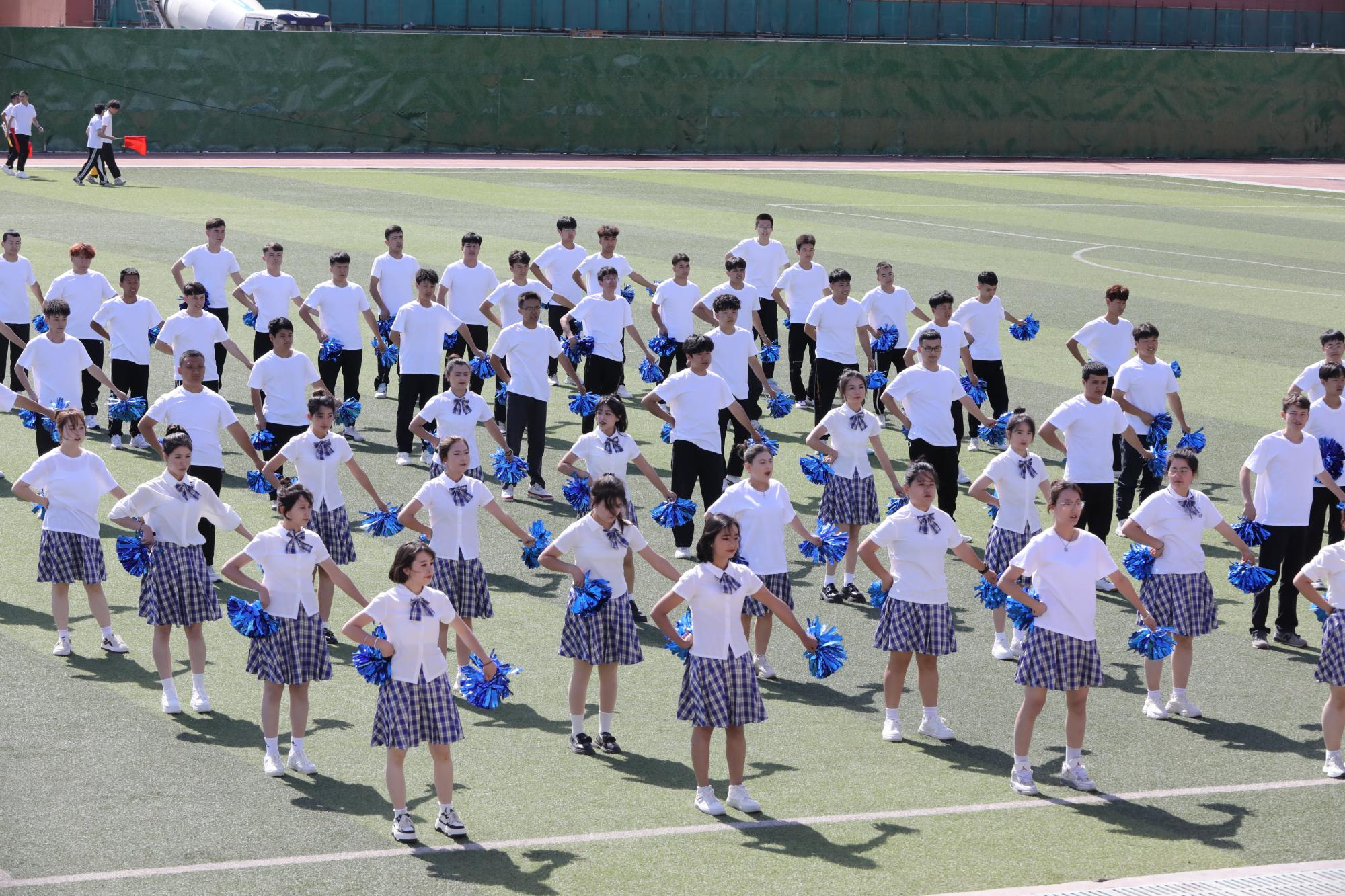 各二级学院的团体操表演整齐划一、激情洋溢、花样繁多的旗帜造型、花球表演、武术表演,各学院的青年学子以天为幕、以地为台,伴着现场青春昂扬的音乐在绿草地中尽兴起舞、欢快跳跃,充分展示出同学们积极向上,青春活力的精神风貌。