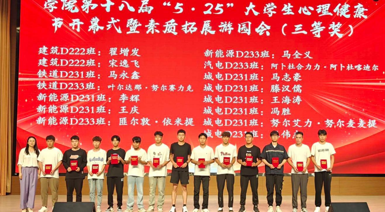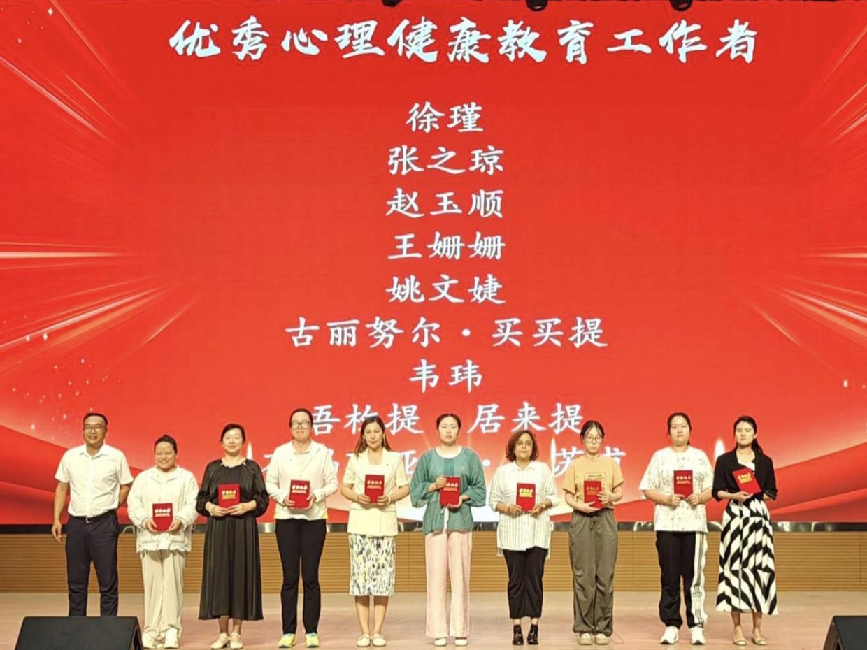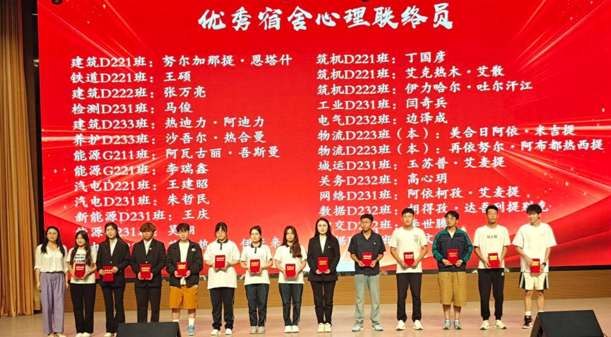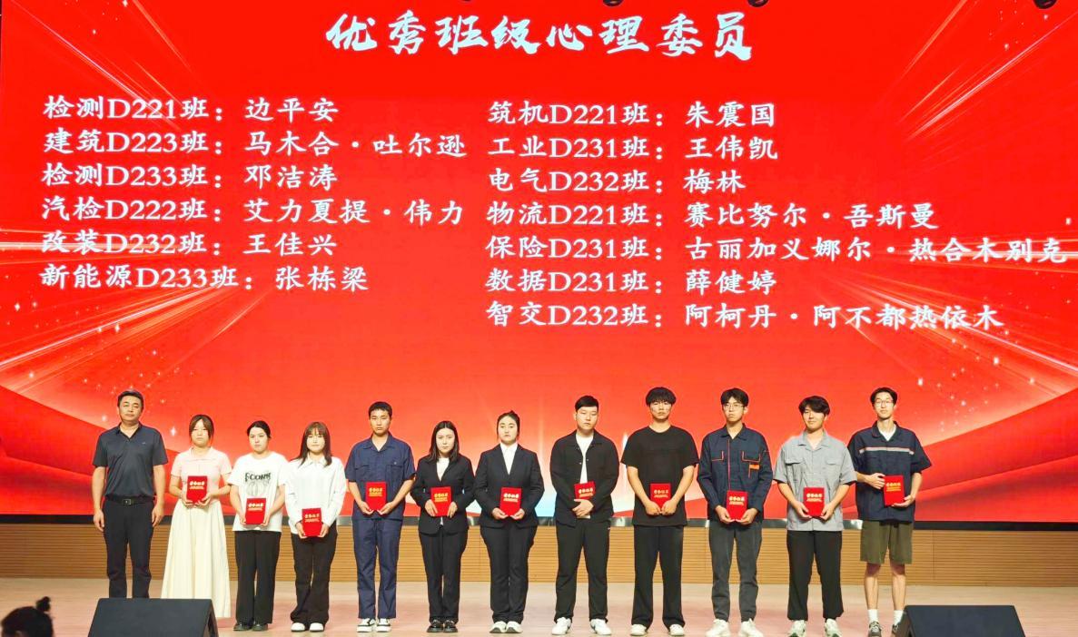 会议宣读了《关于表彰2023—2024学年心理健康教育工作获奖师生的决定》,张之琼等9名教师获得优秀心理健康教育工作者荣誉称号;边平安等13名学生获得优秀班级心理委员荣誉称号;努尔加那提·恩塔什等26名学生获得优秀宿舍心理联络员荣誉称号;刘懿全等30名学生获得素质拓展游园会奖项,出席领导嘉宾为获奖单位和个人颁奖。