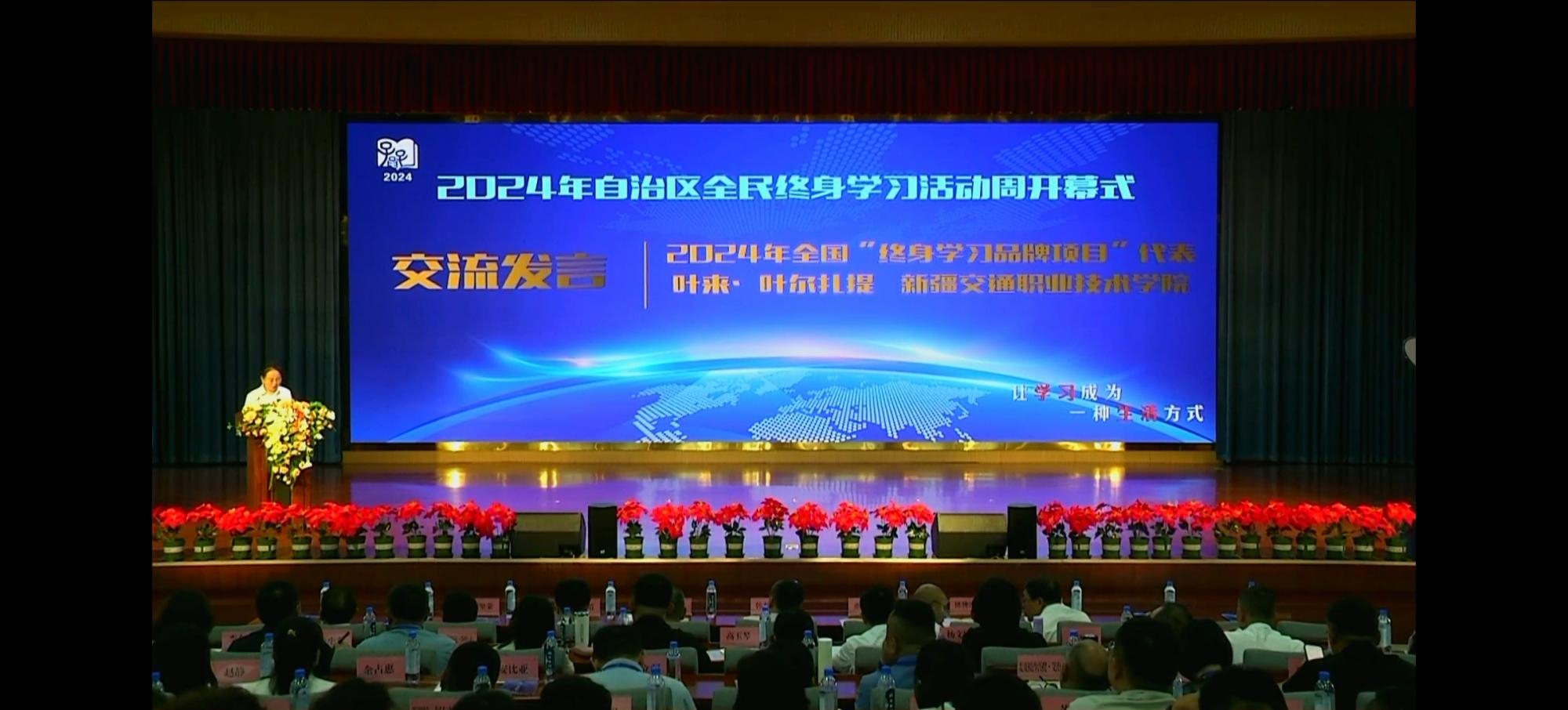 7月15日,以“让学习成为一种生活方式”为主题的自治区2024年全民终身学习活动周开幕式在博乐开放大学举行,开幕式由自治区教育厅主办。我院“普通话推广”终身学习品牌项目荣获全国终身品牌项目并在开幕式上参与展播,人文基础教育学院党总支书记叶来·叶尔扎提作为获奖项目负责人在开幕式上领奖并应邀作交流发言。