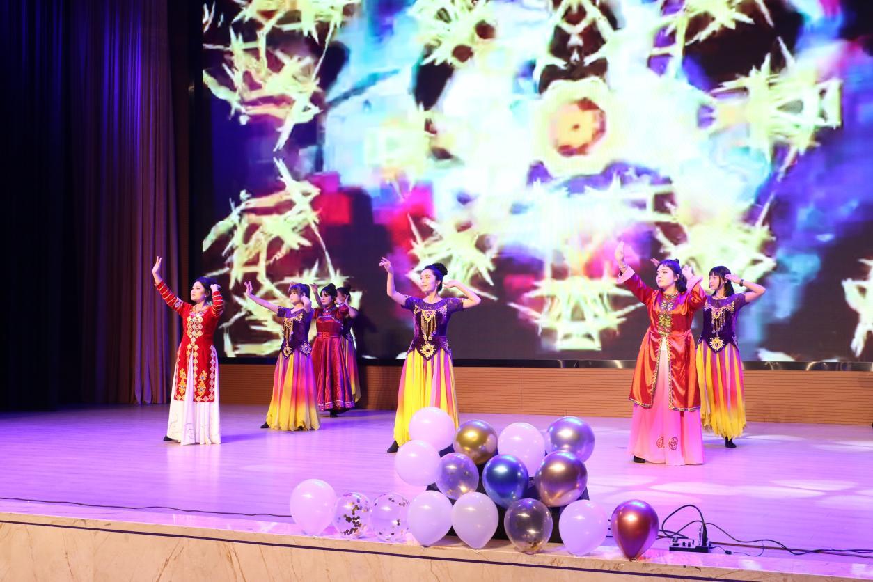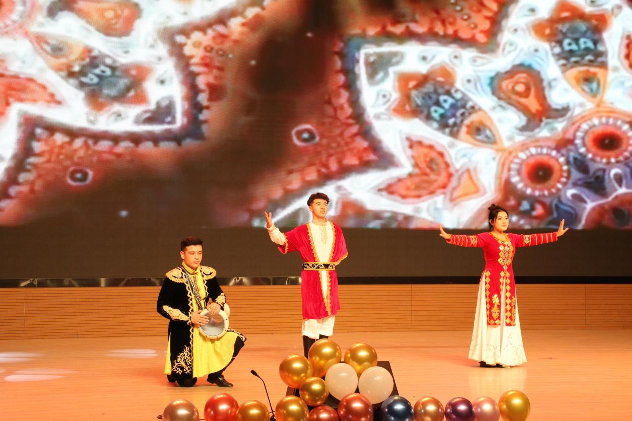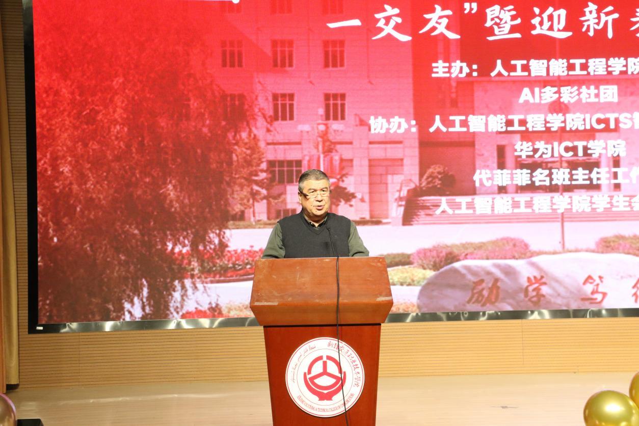 晚会伊始,祖鲁呼玛·米吉提等师生共同演绎舞蹈《晨曦中的玫瑰》,绚丽的灯光,动感的音乐,瞬间点燃现场气氛。阿巴白克里·阿布拉为晚会致辞,对师生的到来表示热烈欢迎,同时也回顾了学院过去一阶段在教学、科研以及在“四进两联一交友”活动等方面取得的成绩,并对未来发展寄予厚望,鼓励同学们在人工智能这片广阔天地里勇敢探索、追求不凡。