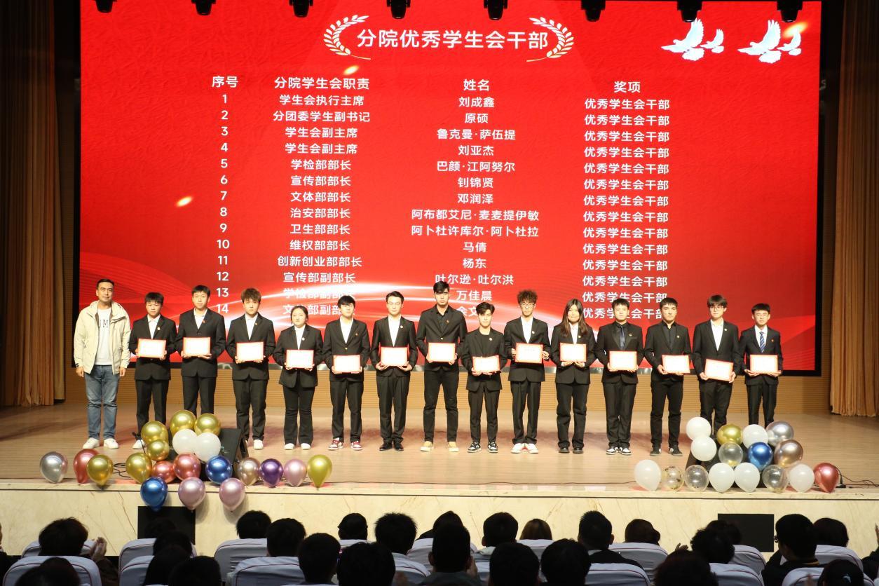 晚会的另一大亮点则是“闪耀星芒、智启新程”表彰环节。学院对过去一学年在学术研究、学科竞赛、社会实践、民族团结等方面表现突出的优秀师生进行了隆重表彰。获奖师生们面带笑容、步伐坚定地走上舞台接受表彰,台下响起了雷鸣般的掌声,这掌声不仅是对他们的祝贺,更是对他们辛勤付出与卓越成就的认可与赞扬。