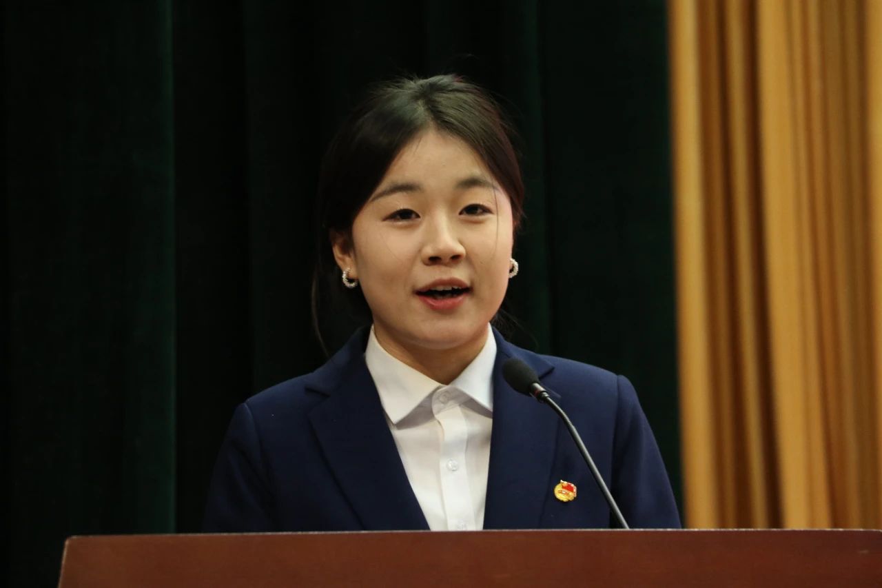 “今天我正式成为一名中国共产主义青年团员,我为此感到自豪,今后,我将努力学习,不负青春,不负时代,争做新时代好青年。”新团员代表吴钰沁说道。