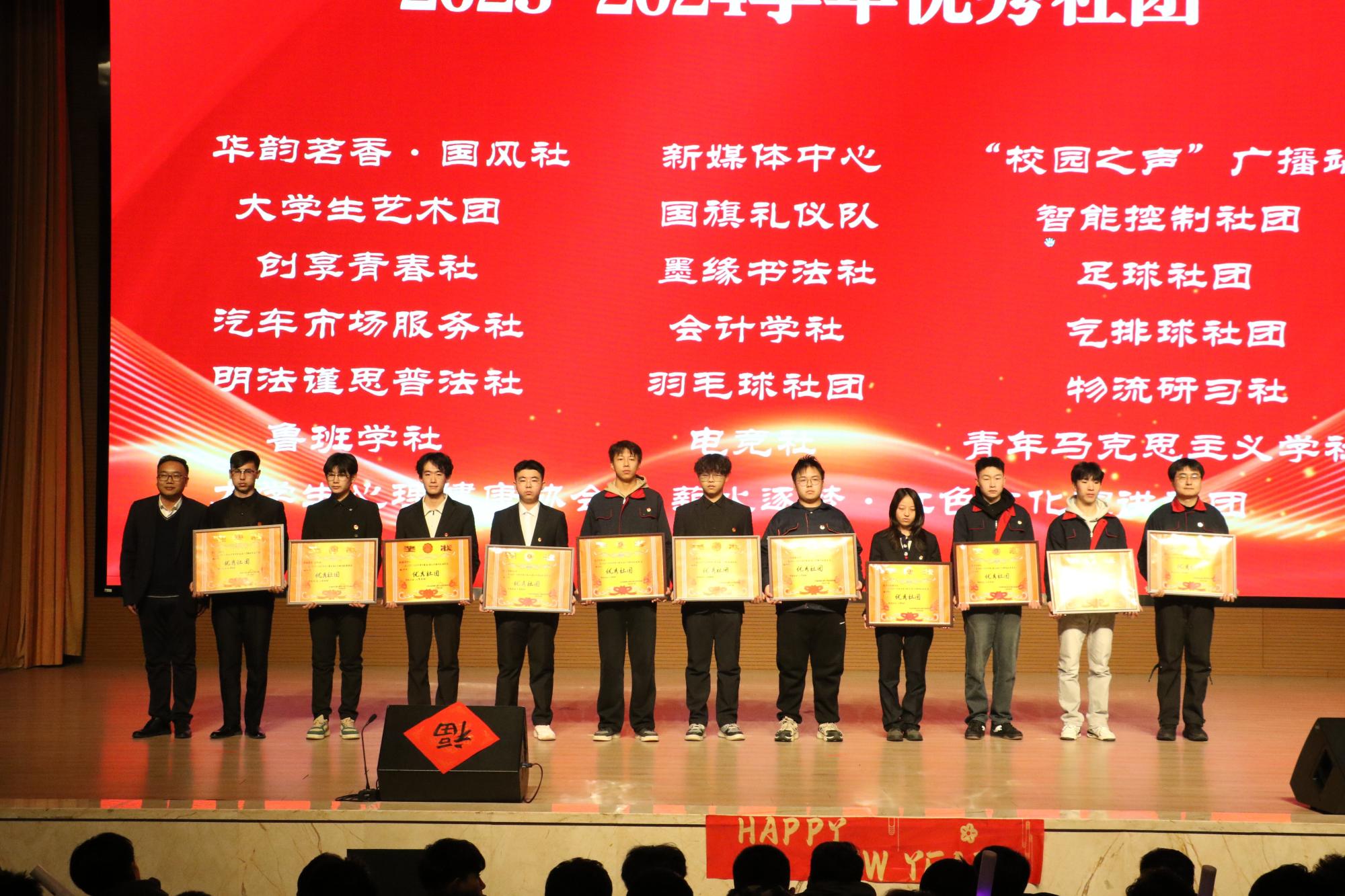 为充分发挥典型模范带头作用,晚会现场对2023—2024年度社团的优秀集体和个人以及铸牢中华民族共同体意识主题教育活动优秀指导教师进行表彰。