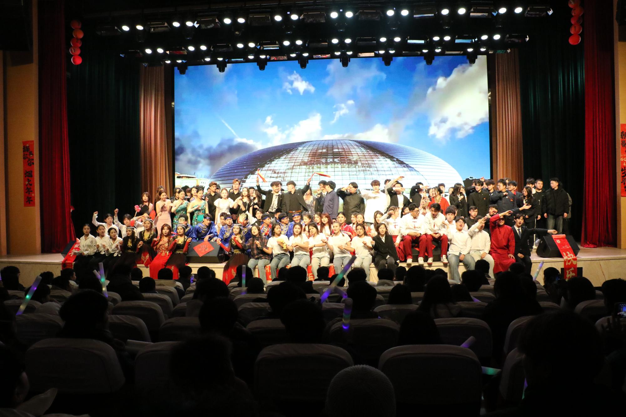 晚会尾声,当全体师生深情合唱起《我爱你,中国》的旋律时,各族师生的心被一种共同的情感紧紧相连,不同的民族,不同的语言,在这一刻汇聚成一股强大的力量,共同表达着对这片土地深沉的爱恋,为晚会画上饱含深情的句号。