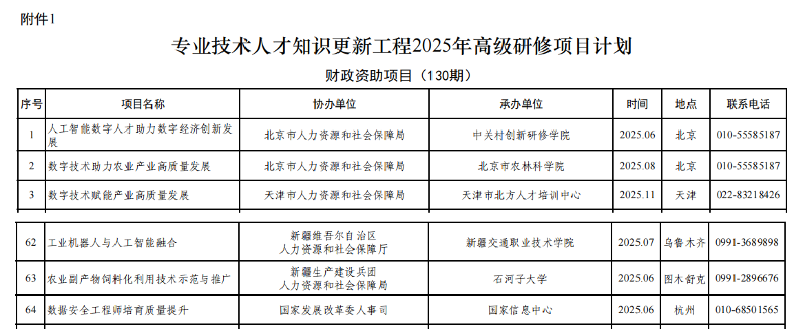 近日,人力资源社会保障部办公厅公布专业技术人才知识更新工程2025年高级研修项目,学院“工业机器人与人工智能融合”项目成功入选,成为新疆高职院校唯一入选的项目。
