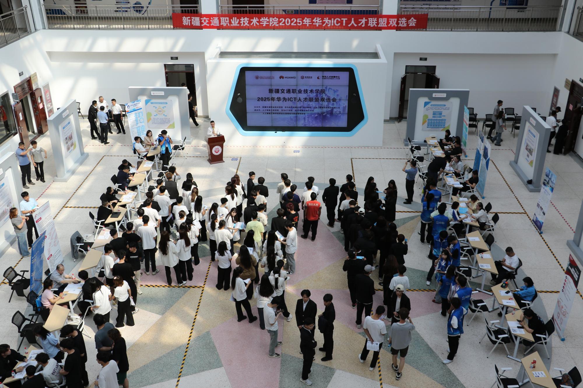 据悉,本次双选会吸引了20余家新疆及全国ICT产业生态领域的优质企业参与,其中包含3家世界500强企业,3家中国500强企业,为学院学子提供近百个高质量实习与就业岗位,搭建起校企精准对接的桥梁。据统计,双选会当天超80%的参会学生与企业达成初步就业意向,充分彰显了学院与华为校企协同育人的双赢成果。