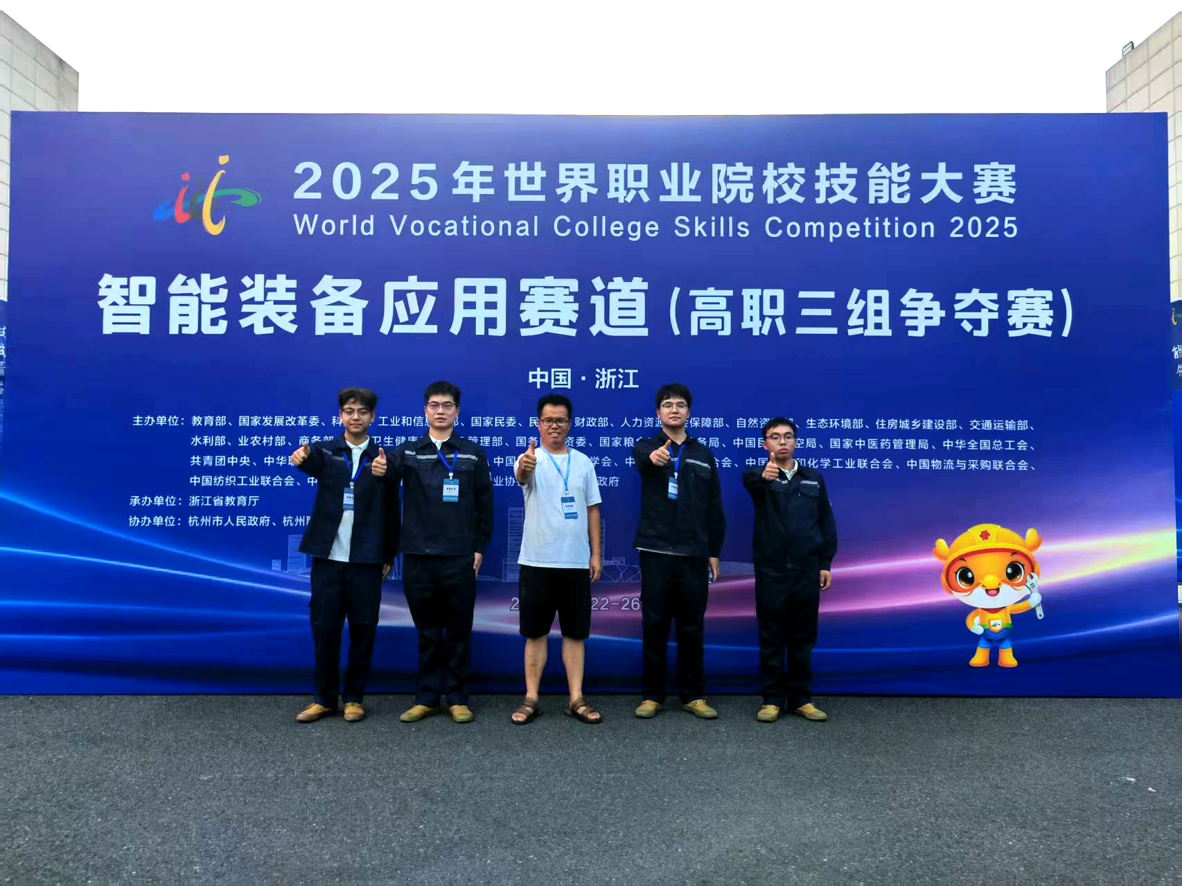 8月26日,2025年世界职业院校技能大赛总决赛争夺赛智能装备应用赛道(高职组)在浙江杭州圆满闭幕。机电工程学院学生曹志豪、石福旭、王俊心、孙超在王满满、赵丽老师指导下,凭借扎实的专业技能和出色的职业素养,从全国198支队伍中脱颖而出,成绩位列小组第二,斩获全国银奖,创下学校参加该赛项以来的历史最好成绩。