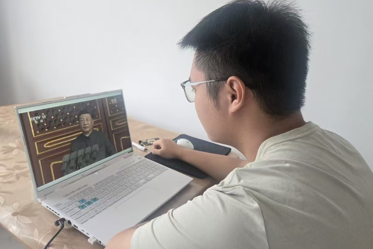 退役不褪色,退伍不退志。观看纪念大会让我心潮澎湃,铿锵步伐和嘹亮号角瞬间把我带回了热血沸腾的军旅岁月。如今虽已重返校园,但军人的烙印早已深入骨髓,国歌奏响时依然会挺直腰板肃立致敬。我坚信报国无需豪言壮语,在军营就站好每一班岗,在校园就学好每门课,这就是我们青年最坚实的担当。我将始终保持军人的钢铁意志,刻苦钻研专业知识,将来在工作岗位上为祖国繁荣富强贡献全部力量!