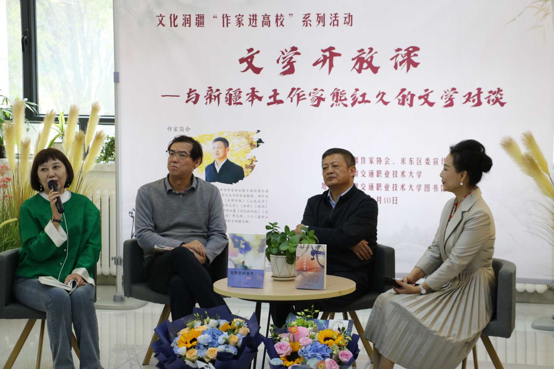 为扎实推动文化润疆工作走深走实,积极搭建新疆本土作家与高校师生深度交流的平台,11月10日,文化润疆“作家进高校”系列活动之“文学开放课——与新疆本土作家熊红久的文学对谈”在学校图书馆大厅温情启幕。众多师生齐聚一堂,共赴一场启迪思想、温润心灵的文学之旅。