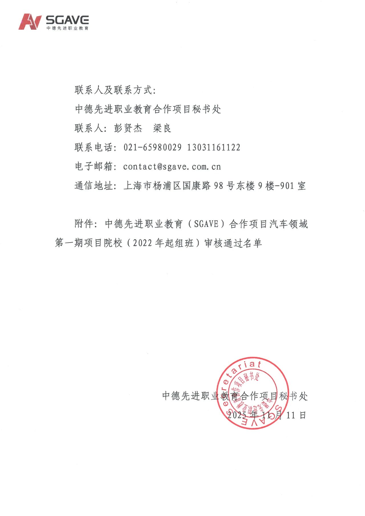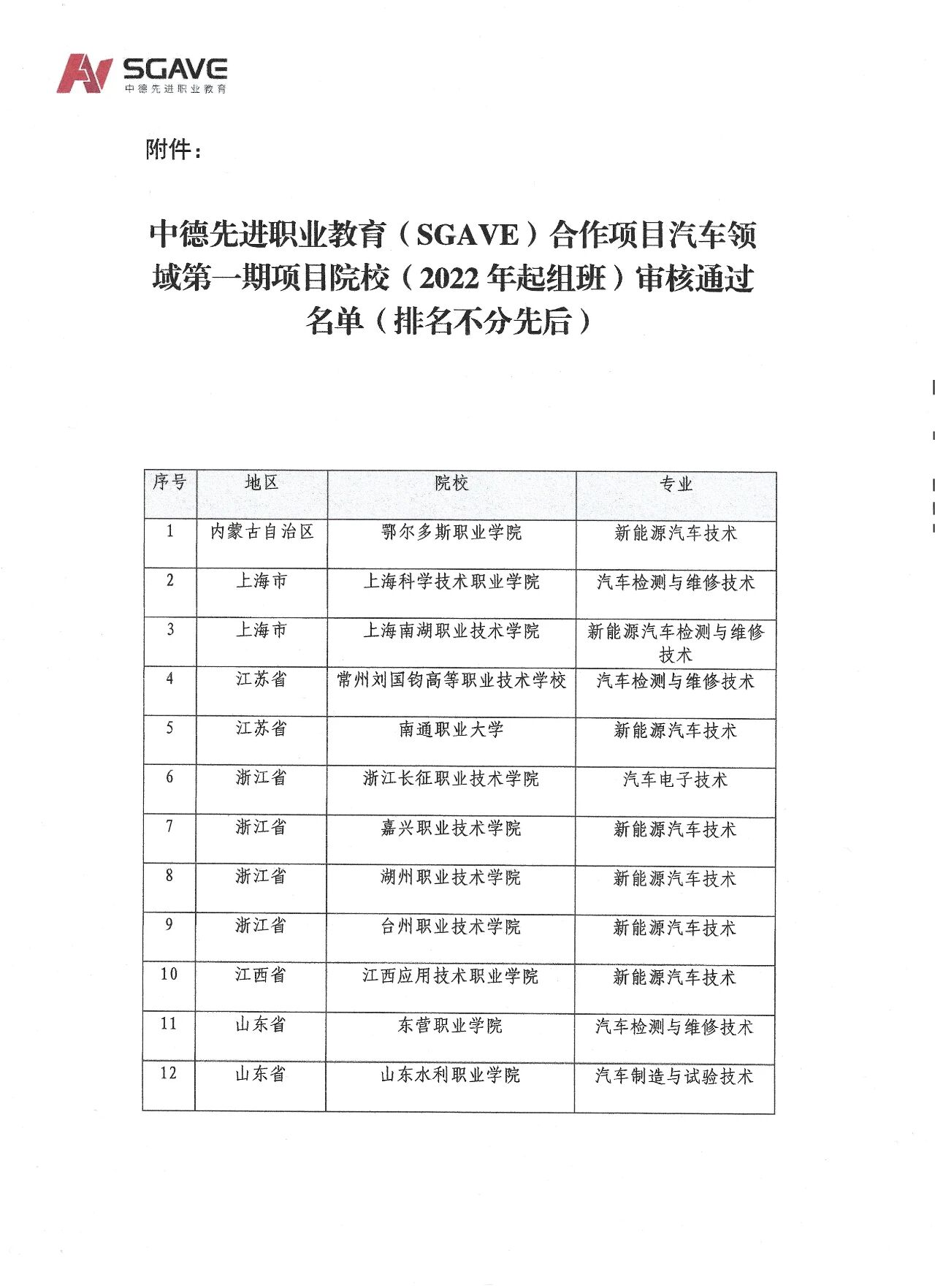 近日,中德先进职业教育(SGAVE)合作项目秘书处公布第一期院校审核结果,学校新能源汽车检测与维修技术专业历经三年建设,顺利通过审核,标志着学校在职业教育国际化办学领域取得阶段性重要成果。