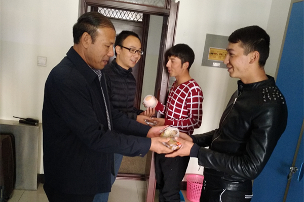随后开始趣味联欢会,活动由分院辅导员周文杰、任晓凡主持,活动设置了击鼓传花、运球折返、拔河比赛等,中间穿插了教师与学生的才艺展示,活动结束,分院党总支书记赛买提·艾力和分院党总支副书记、副院长叶剑锋前往学生宿舍为留校同学送上了月饼等节日慰问品。