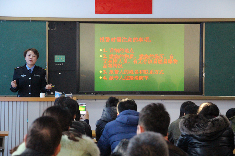 为加强学院消防安全宣传教育活动,进一步提高学院师生员工消防安全意识和自防自救能力,切实防范火灾事故的发生。11月22日下午,学院安委办邀请安盾防火宣传中心消防专家田建华,在综合教学楼105教室开展消防安全知识讲座。学院师生员工120余人参加讲座。