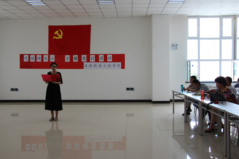 为庆祝建党97周年,教育引导全体党员教师深入学习贯彻习近平新时代中国特色社会主义思想和党的十九大精神,7月3日下午,道路桥梁工程学院党总支组织开展了庆祝建党97周年“党旗映天山”主题党日活动。学院党委副书记、院长段明社、分院领导及全体党员教师参加活动。